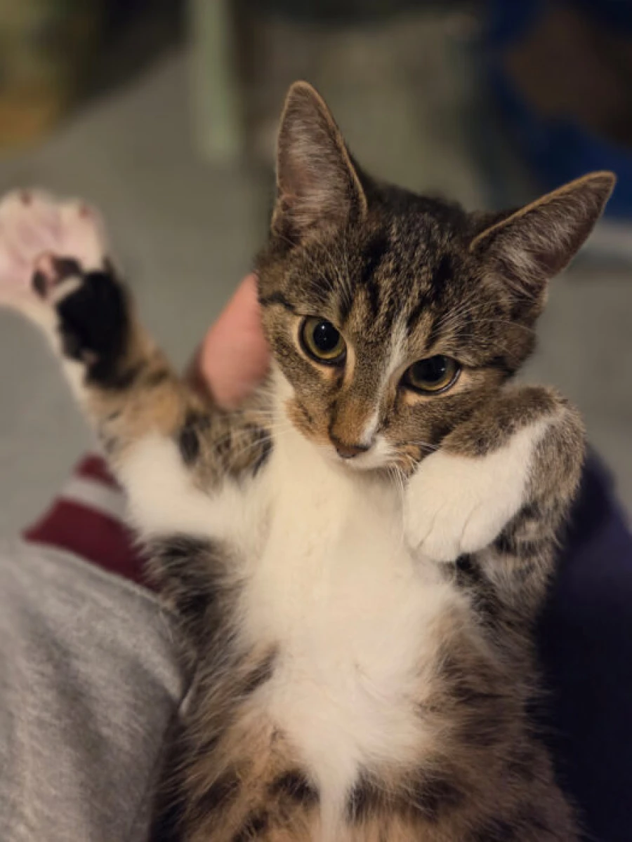Ananasek to uroczy, przytulaśny burasek, który potrafi rozpromienić każdy, nawet najbardziej pochmurny dzień. Został znaleziony w pobliżu galerii Avenida w Poznaniu, gdzie zagubiony podchodził do ludzi, prosząc o pomoc. Maluch trafił do schroniska, gdzie otarł się o niebezpieczeństwo panleukopenii, ale na szczęście wszystko skończyło się dobrze. Dziś jest zdrowy, radosny i gotowy rozpocząć nowe życie u boku człowieka, który odwzajemni jego zaufanie. Ananasek to kociak o miękkim sercu – uwielbia leżeć na człowieku, mruczeć i tulić się bez końca. Jeśli marzysz o czułym towarzyszu, który codziennie poprawi Ci humor, ten mały psotnik będzie idealnym wyborem.