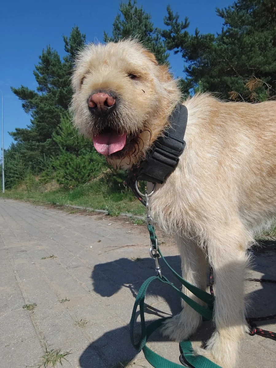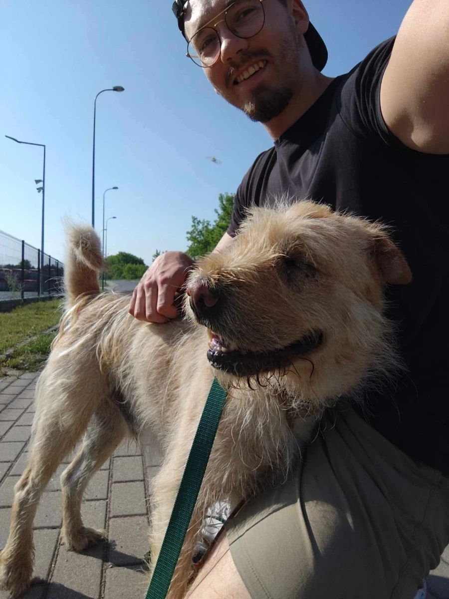 Drako to około 4-6-letni pies ważący lekko ponad 20 kilogramów. Wygląda jak nieślubne dziecko shar-pei i terriera. ;) Z zachowania również przypomina przedstawicieli wyżej wymienionych ras. Drako trafił do nas ze wsi i nie wiemy wiele o jego przeszłości. Mieszka u nas od kilku tygodni i poznaliśmy go już na tyle, że możemy określić go jako psa gotowego do adopcji. Drako to pies o mocnym charakterze, który bywa uparty i wie, czego chce. Wymaga cierpliwego, wymagającego i konsekwentnego człowieka. Jego przyszły właściciel nie może pozwolić sobie wejść na głowę, ale absolutnie nie mamy na myśli używania przemocy wobec psa. Wręcz przeciwnie - relacje z Drako powinny być budowane na wzajemnym szacunku i poszanowaniu granic. Drako w odpowiednich rękach staje się świetnym psem - miśkiem do tulenia i wymarzonym towarzyszem podczas spacerów. Jest lojalny wobec zaufanych osób i lubi przebywać w ich towarzystwie. Na wybiegu czy spacerze zajmuje się psimi sprawami, jednak gdy już wystarczająco się zmęczy, przychodzi do opiekuna na głaskanie. Uwielbia klepanie po zadku i bokach. Liże człowieka po twarzy, przybiega się przytulać i podaje łapkę. Coraz lepiej reaguje na korekty i przywołania. Bywa uparty i pewnie nie raz będzie próbował wejść właścicielowi na głowę. ;) Nie przeszkadza mu czesanie, choć gdy skończy mu się cierpliwość to potrafi warknąć. Pięknie się komunikuje i jasno sygnalizuje swoje niezadowolenie. Nie wszystkich ludzi polubi od razu, niektórych potrafi przywitać “burczeniem”. Tu z pomocą przychodzą smaczki, które Drako po prostu uwielbia. Nie jest wybredny, ma spory apetyt.
