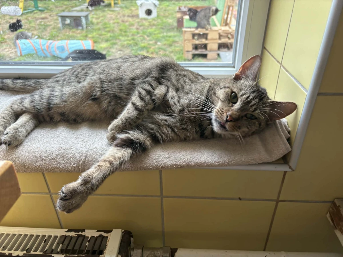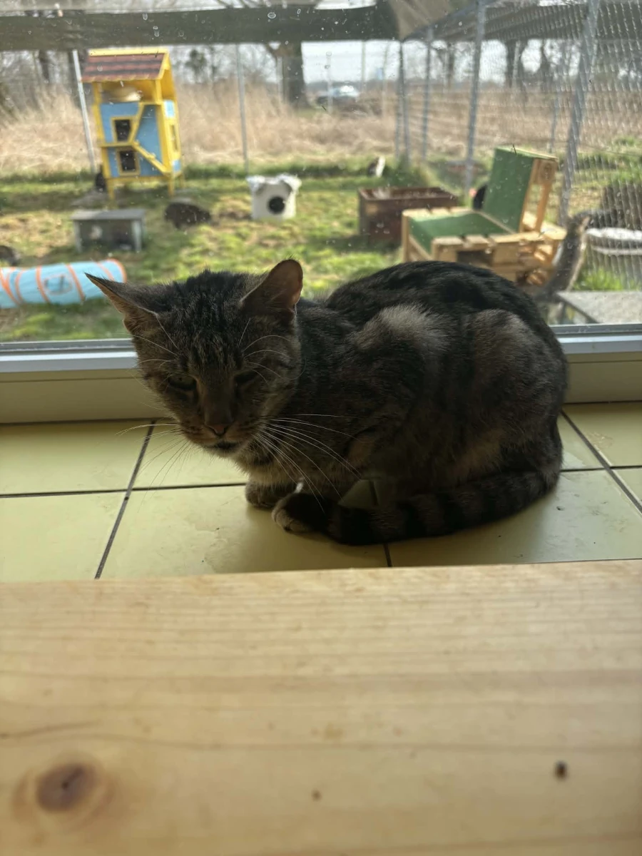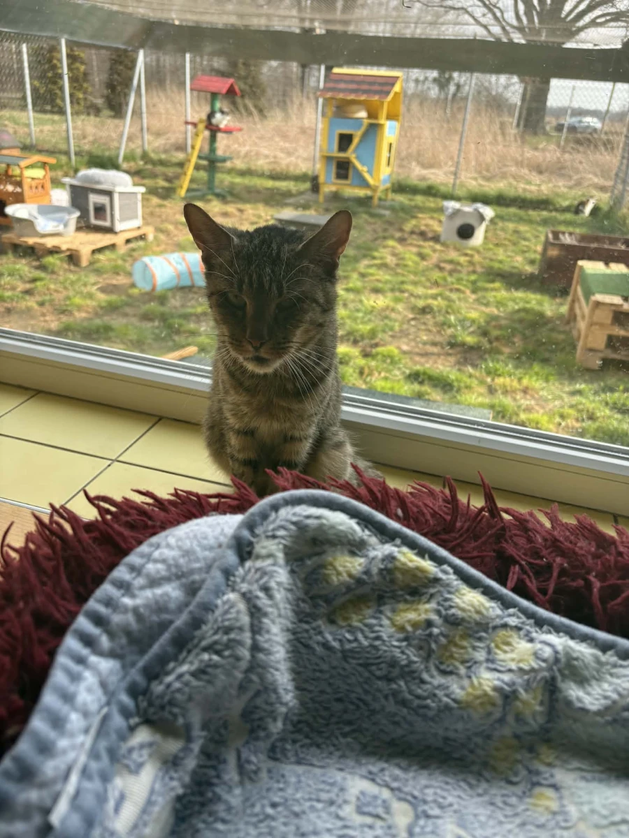 Przebywa w pokoju nr 7, kociarnia nr 3.