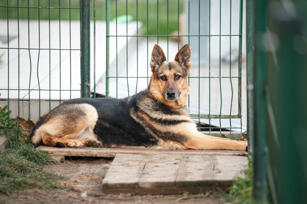 Będąc w boksie załatwia się tylko po zewnętrznej stronie, niestety nudę i stres często rozładowywała rozsypując karmę i nosząc miskę w pysku. Na ten moment nie ma takiej możliwości, korzysta jednak z dużej piłki, którą może toczyć i za nią biegać☺️