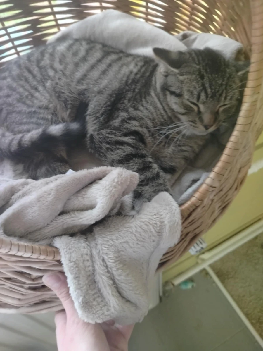 Śpioszek należy do tych płochliwych kotów, ale można go dotknąć i delikatnie pogłaskać. Za dnia raczej śpi, przypuszczamy, że prowadzi nocny tryb życia. Ale wszystko jeszcze jest przed nim. Jest młody, dlatego też uważamy, że jeszcze wiele może się zmienić, a oswojony Śpioszek dostosuje tryb życia do swoich kochanych opiekunów.