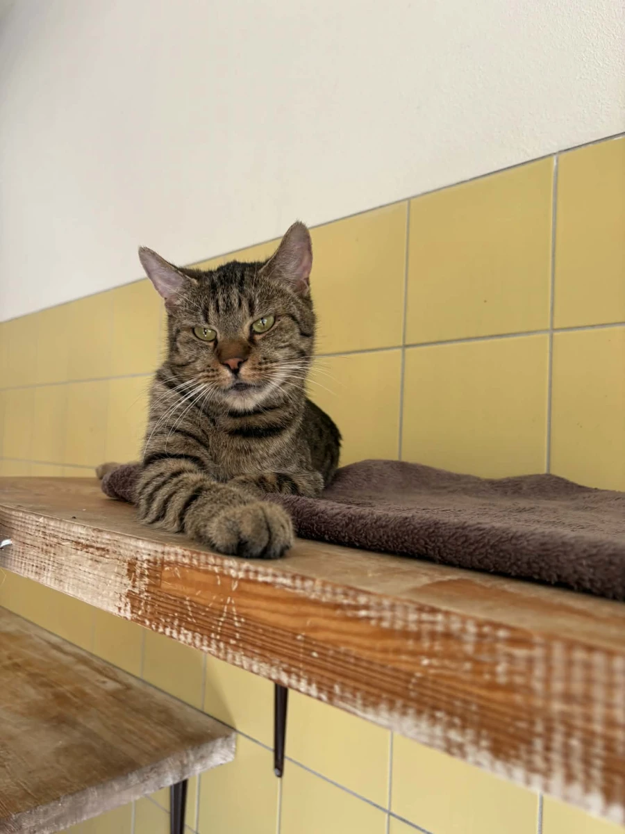 Przebywa w pokoju nr 7, kociarnia nr 3.