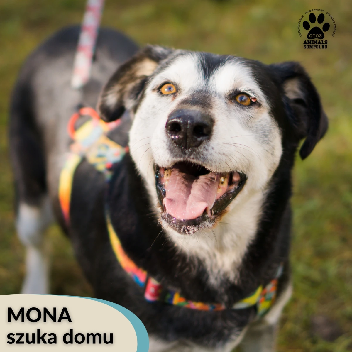 Obecnie Mona mieszka w boksie z Reksem i Aszą, z którymi doskonale się dogaduje. Uwielbia zabawy z innymi psami i jest niezwykle towarzyska. Na spacerach chodzi na smyczy jak prawdziwa dama – spokojnie, z zaciekawieniem obserwując otaczający ją świat. Mona kocha odkrywać nowe miejsca i poznawać nowe zapachy, a każda chwila spędzona na świeżym powietrzu to dla niej ogromna radość.