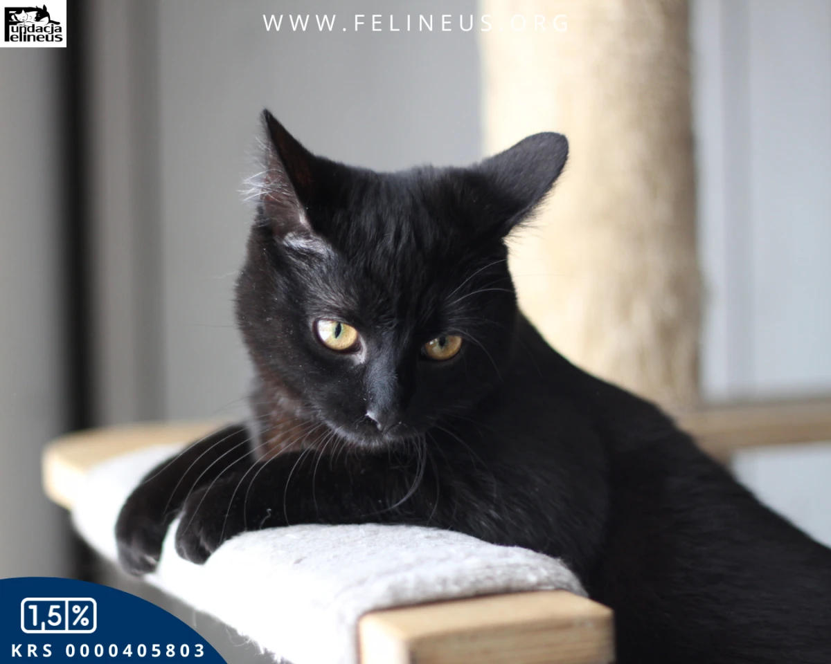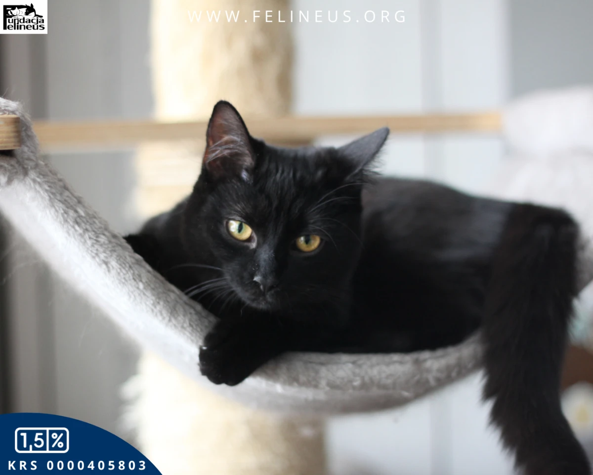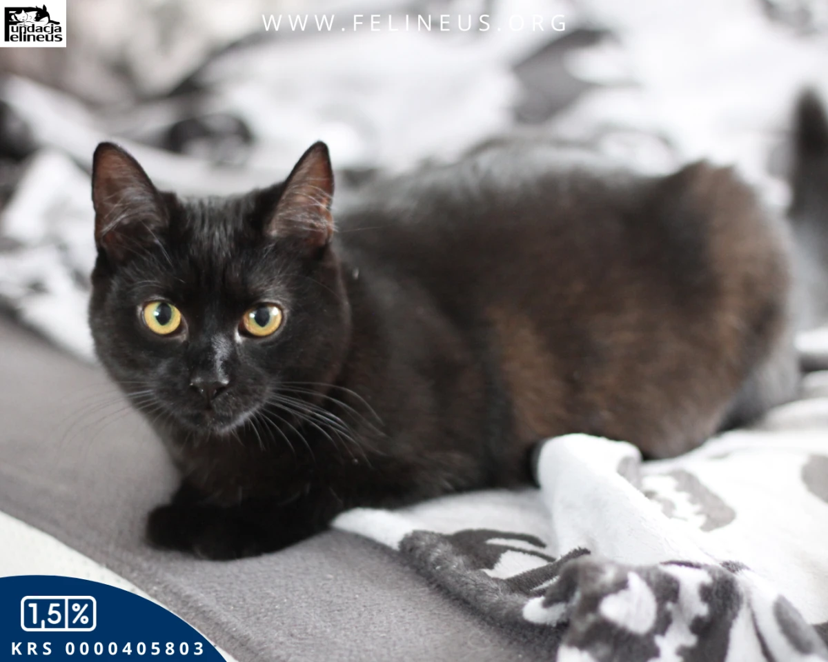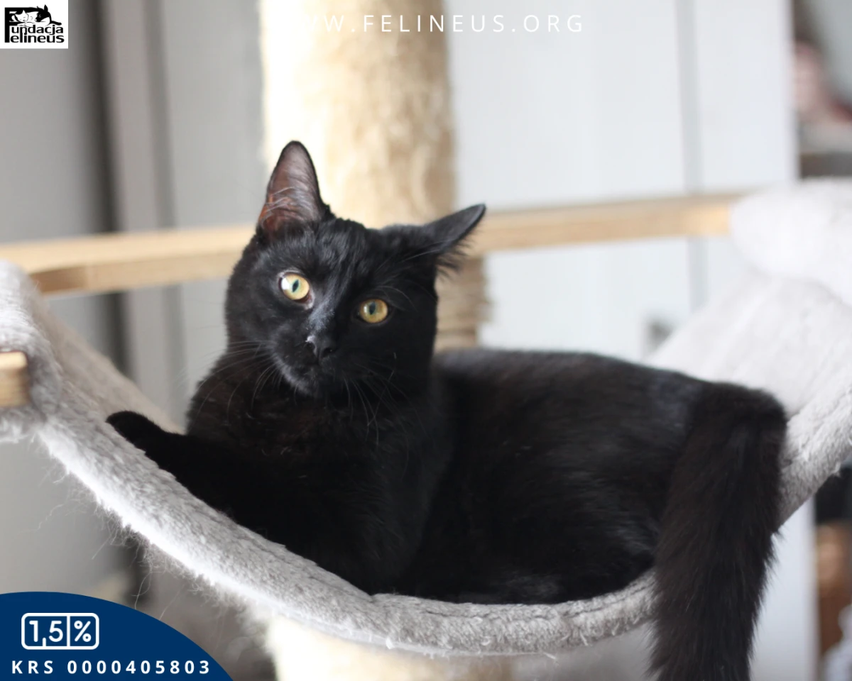 Angel to kotka urodzona w maju 2025r. Ta czarna piękność to urodzona dusza towarzystwa. Jeśli poszukujesz kociego kompana, który będzie uczestniczył w codziennych obowiązkach, a na koniec dnia zaśnie wtulony w twój bok, to dobrze trafiłeś.