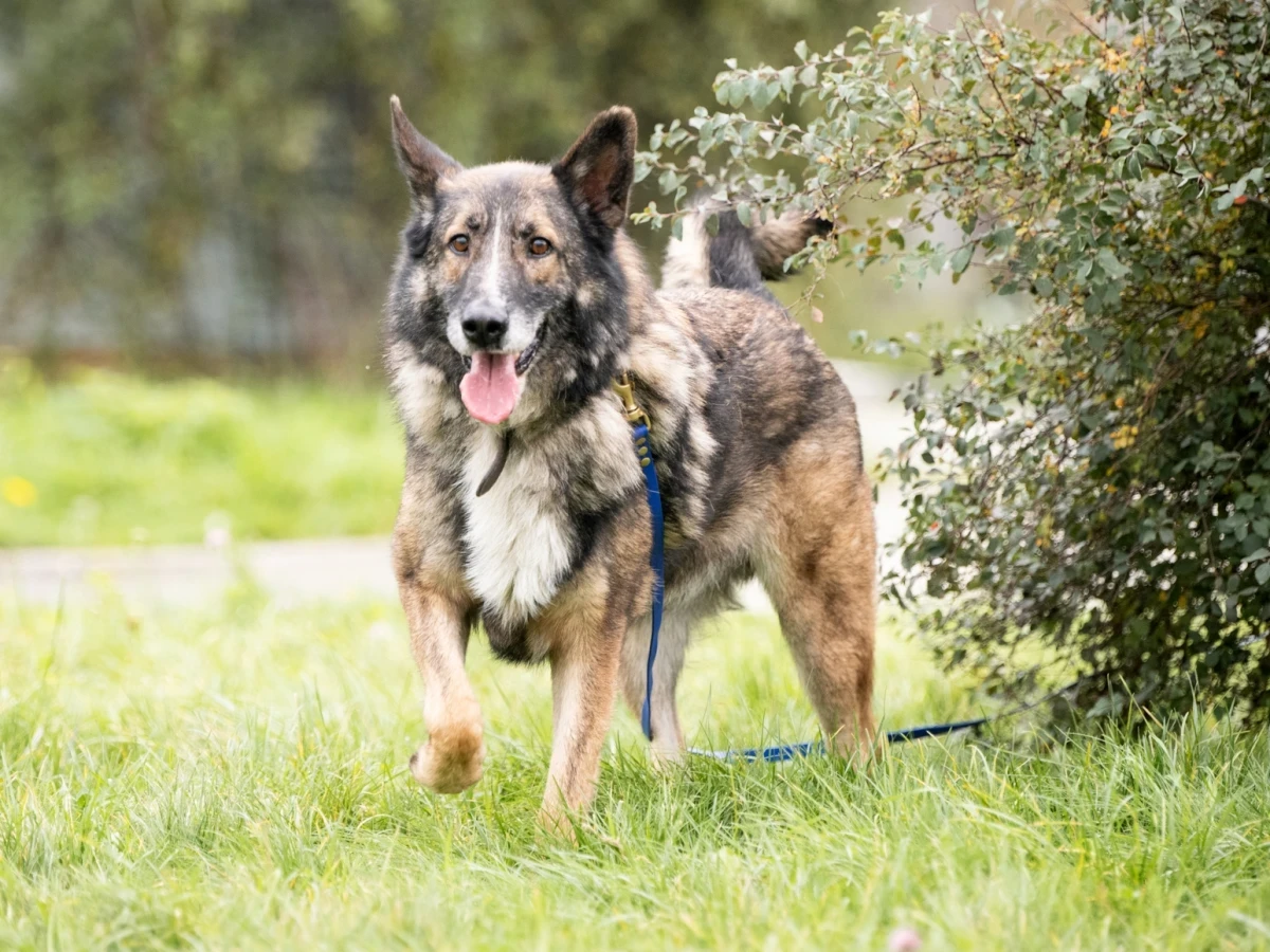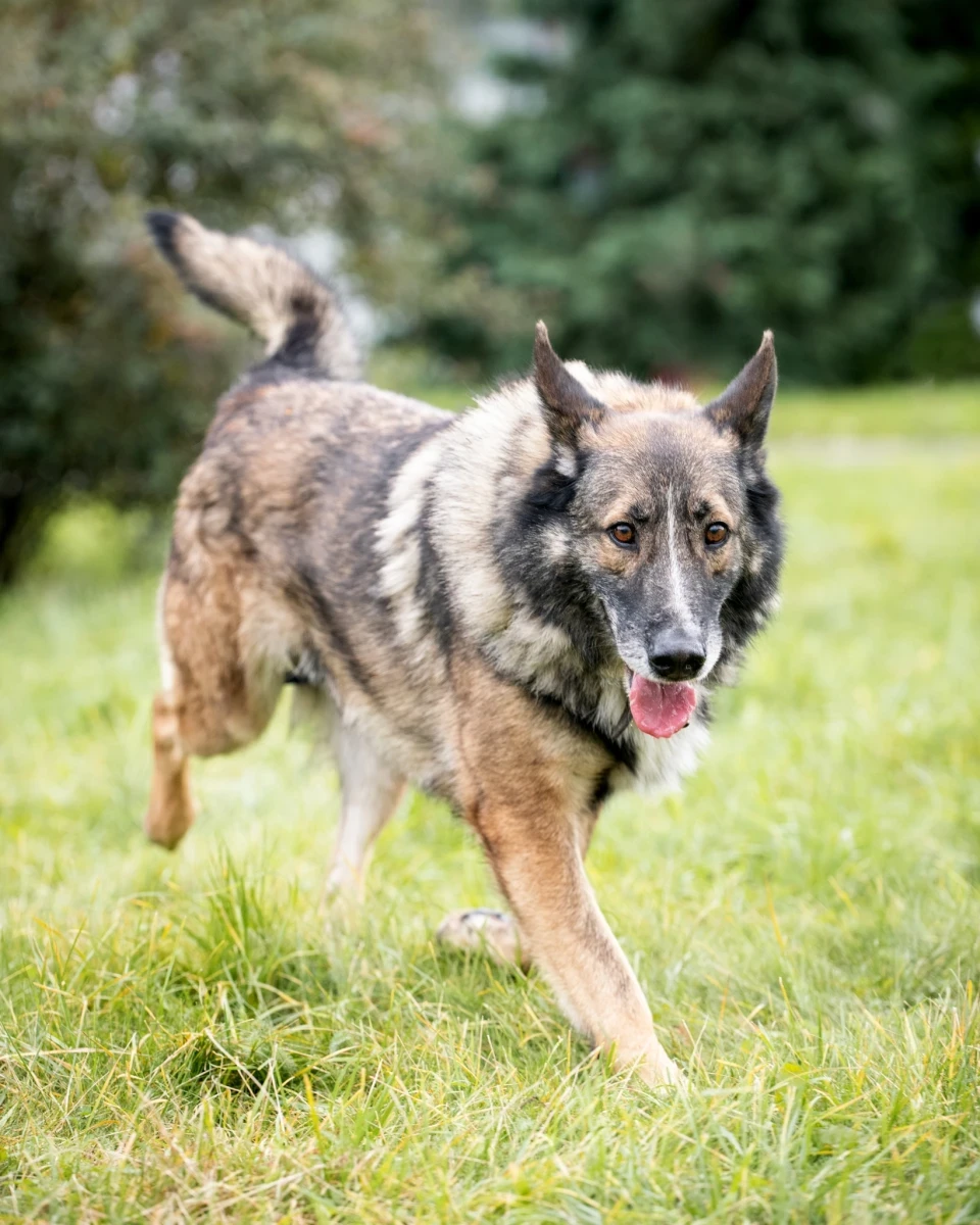 Bies zrobił ogromne postępy w ostatnich miesiącach, nie boi się już bliskości człowieka, uwielbia się przytulać, być głaskanym, wychodzi z boksu, co wcześniej praktycznie było niemożliwe. Potrafi, na znanym mu terenie, eksplorować otoczenie, załatwiać swoje potrzeby.