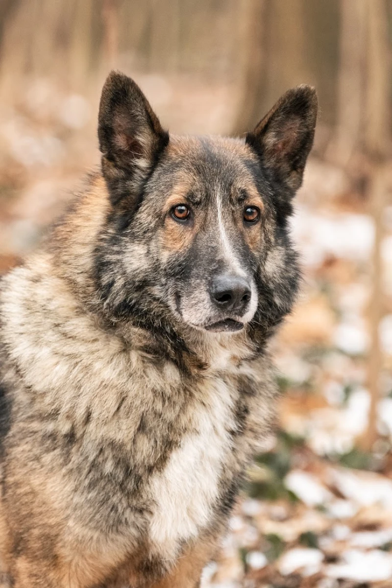 Ma około 9 letni pies, który trafił do schroniska jako znaleziony z dwójką kolegów. Nie wiadomo jaką miał przeszłość, ale z zachowania psa wynika, że nie chodził na smyczy, nie miał też raczej zbyt częstego kontaktu z człowiekiem.