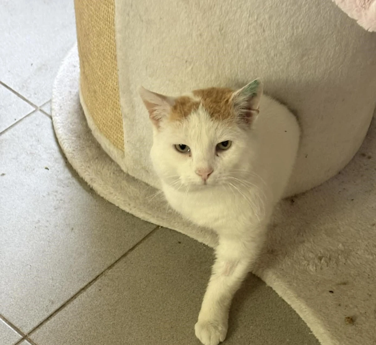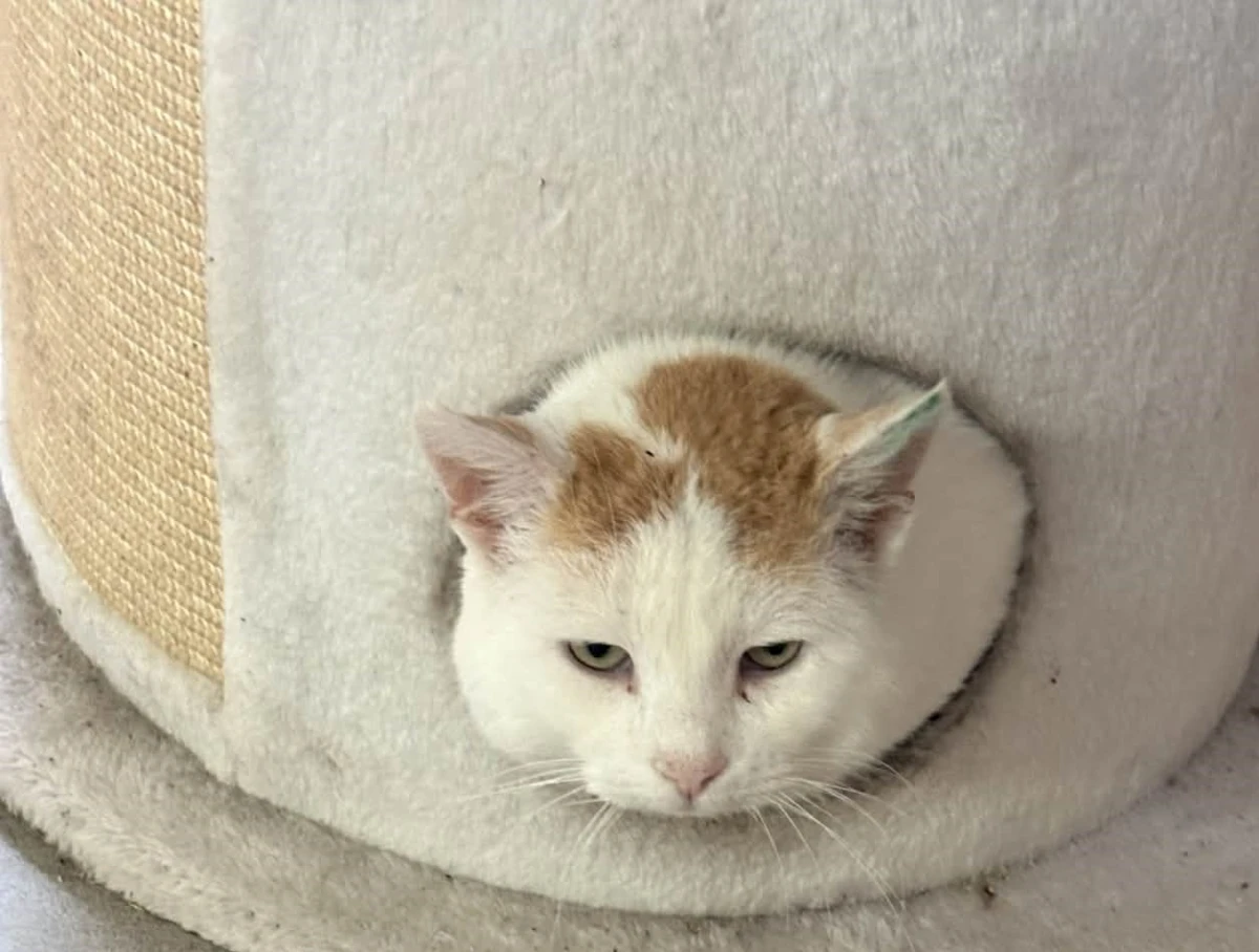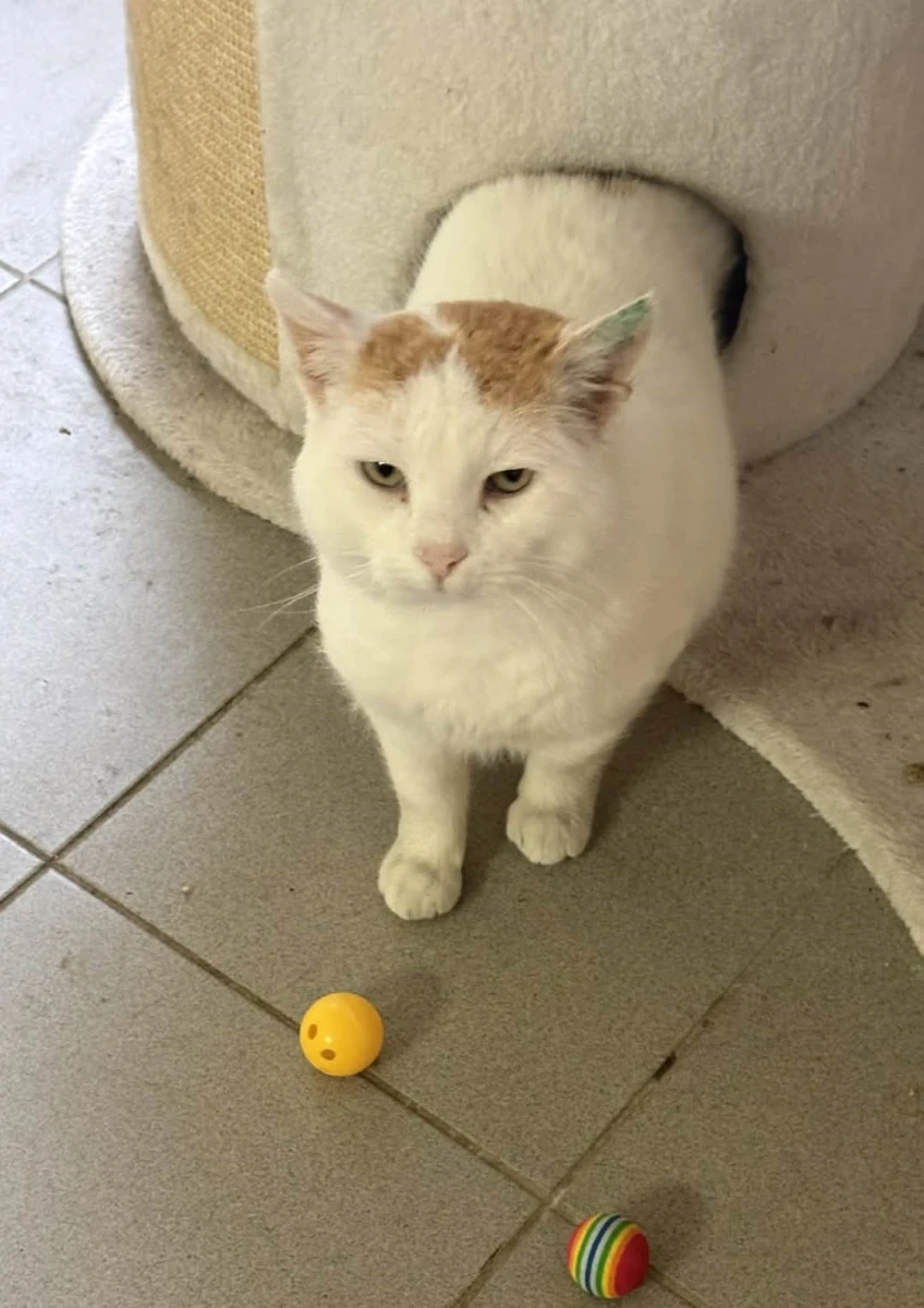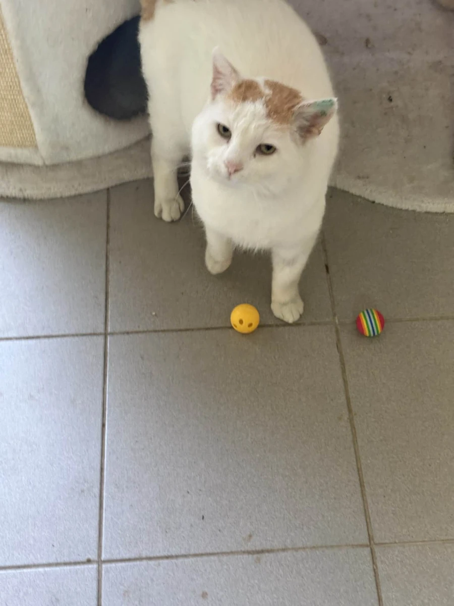 Boguś to przemiły kocurek: biały z rudymi dodatkami. Początkowo onieśmielony, chował się w budce. Po delikatnej zachęcie wyszedł i okazał się uwielbiającym głaskanie pieszczoszkiem.