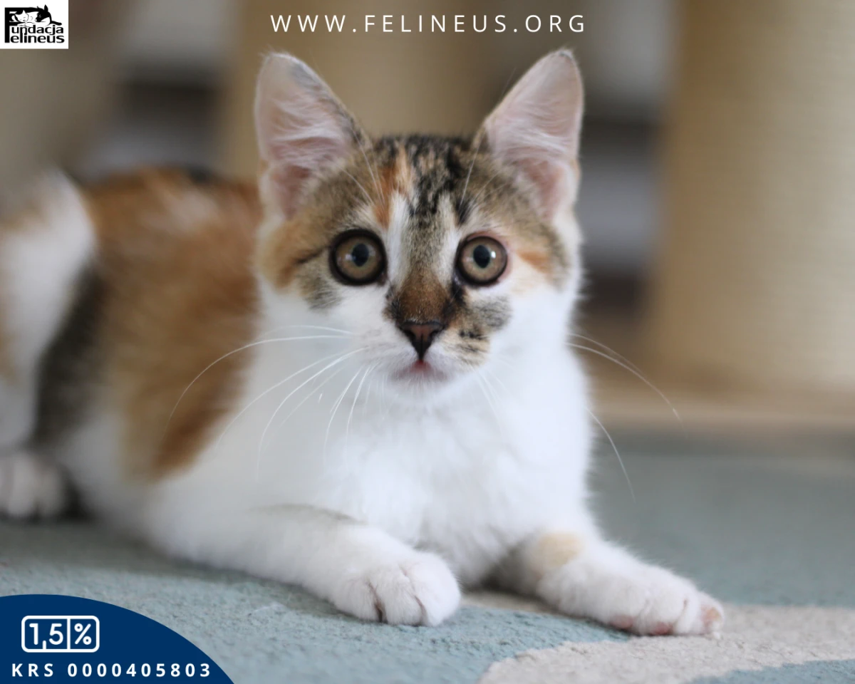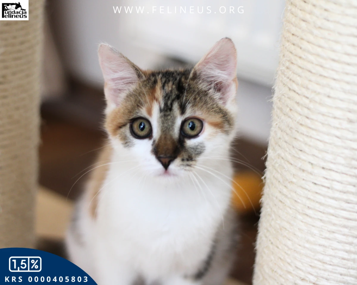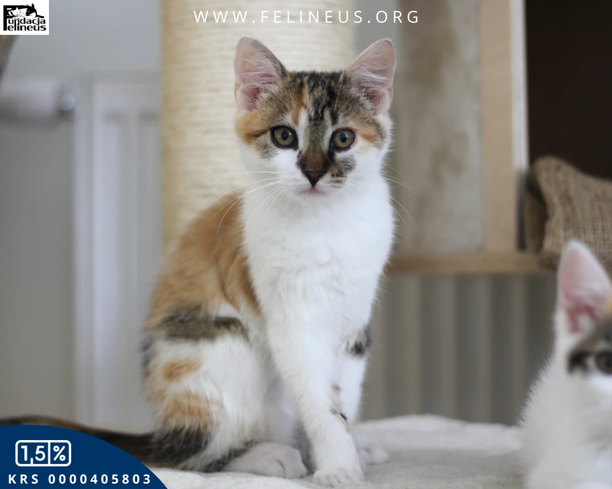 Emet – niezależna dama z klasą szuka swojego miejsca. Urodzona w maju 2025 roku, Emet to spokojna kotka z duszą obserwatorki. Nie szuka dram, tylko słońca na parapecie i własnego kąta w domu. Z siostrą gania jak szalona, z koca zrobi labirynt i tam spędza czas. Nie miauczy, nie narzeka, nie domaga się atencji – człowiek? Może być, ale nie musi. Nie przepada za noszeniem na rękach ani za kolankami – to nie jej klimat. Śpi całą noc. Toleruje dzieci i próbuje dogadać się ze starszymi kotami. U weterynarza – wzorowa pacjentka. W aucie – bez dram. Nie oczekuj kota-przytulanki – Emet to niezależna królewna, która ma swoją siostrę i siebie. Ale jeśli szukasz spokojnej, mądrej towarzyszki życia – właśnie ją znalazłeś.