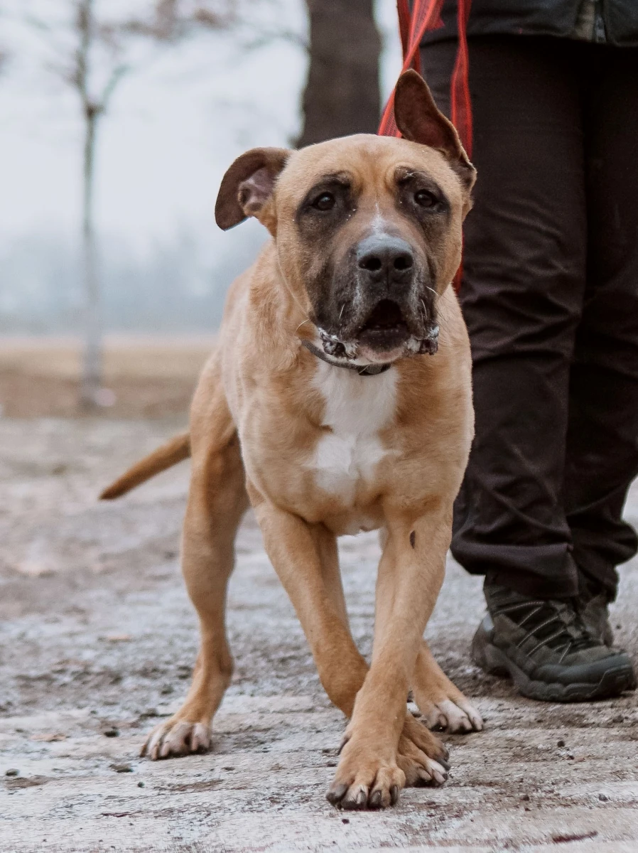Gacek to spory pies mix TTB/molosa. Został znaleziony bardzo zaniedbany, ktoś go głodził 😔 można było policzyć u niego wszystkie kości, ale obecnie ładnie przybiera na wadze i szuka domu. Wzbudza sympatię od pierwszego spojrzenia 🙂 - jest uroczy - jest niezdarny - jest uparty - jest inteligentny - Ma 5 myśli na sekundę i nie zawaha się ich użyć 😀 Nie jest to kłopotliwy, ani trudny pies. Na ten moment jego jedynym problemem jest kontrola emocji. Tu nie potrzeba zaawansowanych analiz, ani technik behawiorystycznych. Scooby pobudzony sytuacją na początku spaceru może skakać, podgryzać smycz itp ale nie należy się tak do końca nabrać na styl : mam adhd i problemy z emocjami. Bo trochę ma, a trochę jest sprytny 🙂 . Tu wystarczy przewodnik o minimum dwóch połączeniach neuronowych. Przewodnik, który: - Kontroluje własne emocje i odruchy, żadnego chaosu, niezdarności i wymachiwania smyczą, rękoma - spokój, stabilność i opanowanie - Rozumie, że pobudzanie pobudzonego psa jest złym pomysłem - Wyznaczy zasady konsekwencją i spokojem - Potrafi zarządzać emocjami psa : wyciszy ale i pobudzi ŚWIADOMIE To nie oznacza, że spacery są męką z wiecznie ciągnącym i pobudzonym psem . Po prostu Scoobiemu zdarzy się złapać za smycz ale przy ogarniętym człowieku po 5s nie ma problemu i można się cieszyć spacerkiem. To bardzo sympatyczny, pełen uroku pies. Typowy ttb, któremu nie wyznaczono podstawowych zasad. Będzie fajnym kompanem do długich spacerów i leżenia pod kocykiem 🙂 Witek przebywa we Wrocławskim Schronisku dla Bezdomnych Zwierząt. Wymagana jest ankieta, rozmowa i spacery zapoznawcze po których zostanie podjęta obustronna decyzja. *Pamiętajmy, że opis został przygotowany na podstawie obserwacji psa w schronisku, dlatego po adopcji jego reakcje i nawyki mogą się zmienić — na plus, ale też z pewnymi wyzwaniami.