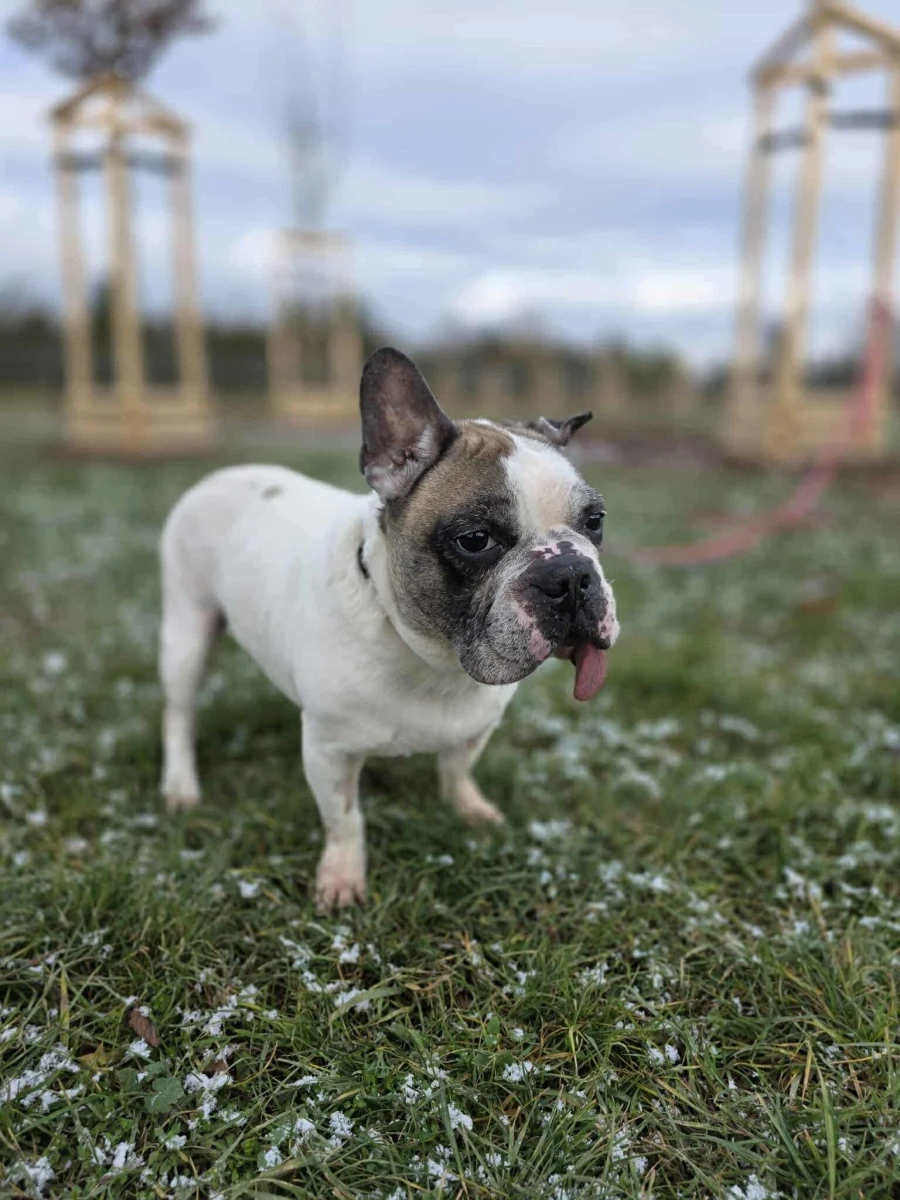 Lutek to 12-letni piesek w typie buldożka francuskiego. Został znaleziony samotnie, gdy bez opieki podążał wałem nad Odrą. Biorąc pod uwagę jego stan zdrowia, miał ogromne szczęście, że został w porę zauważony i zabezpieczony.