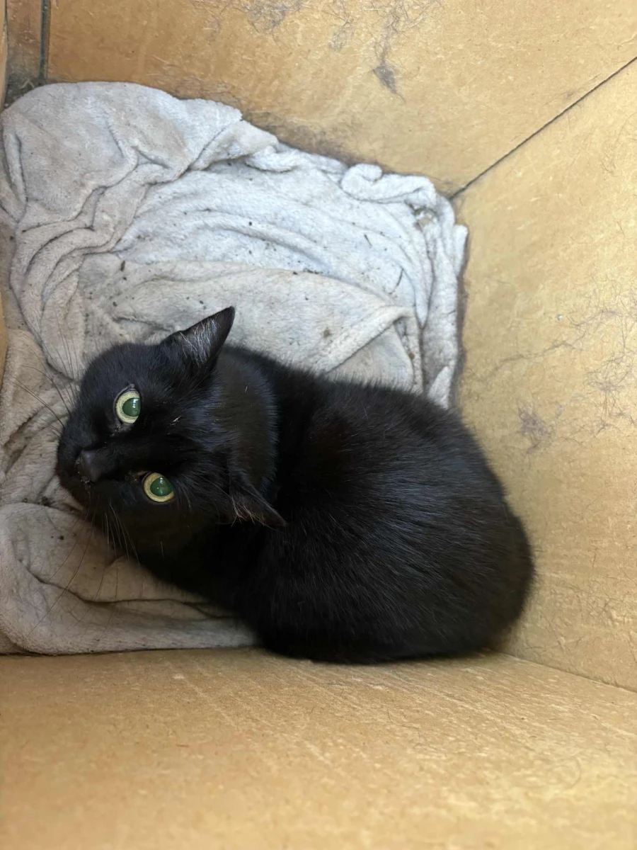 Kocurek jest zestresowany, raczej niezainteresowany kontaktem z ludźmi. Przynajmniej na razie.