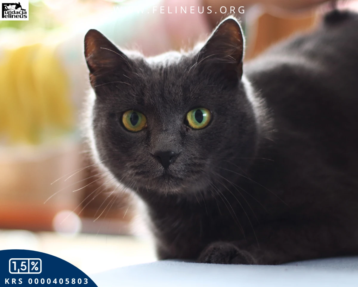 Popiołka to spokojna kotka urodzona około 2023 roku. Lubi towarzystwo człowieka i dogaduje się z dziećmi. Interesują ją codzienne czynności i lubi być w centrum domowego życia, ale samotność w czasie pracy opiekunów nie jest dla niej problemem. W stosunku do innych kotów jest nieufna, ale możliwe, że z czasem przekona się do towarzystwa.