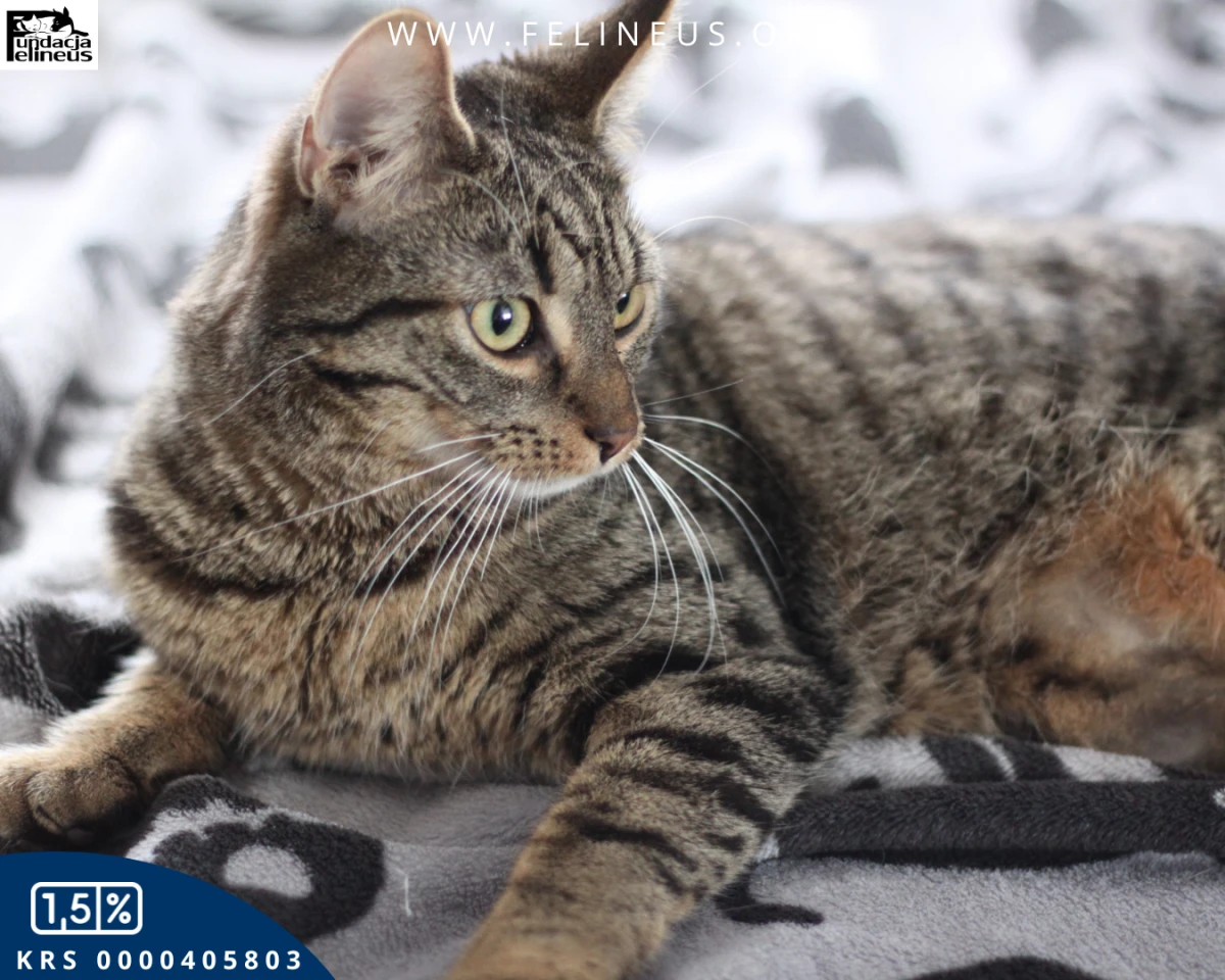 Stitch to kocurek urodzony w maju 2025r. To ciekawski koci kawaler, który kocha zaglądnąć w każdy kąt. Uwielbia zabawy i dobre jedzonko. Stitch lubi towarzystwo innych kotów, nie straszny mu również pies.