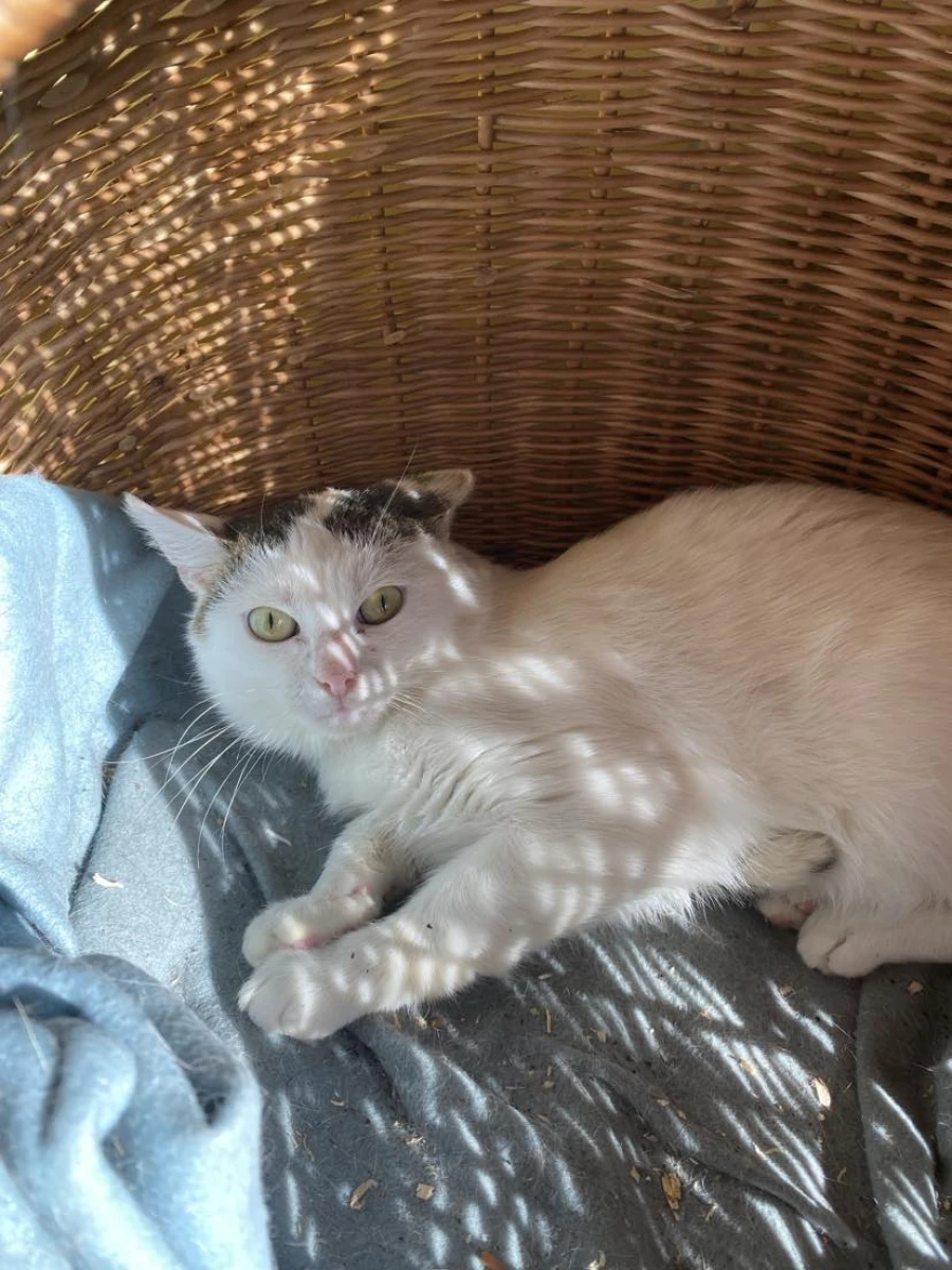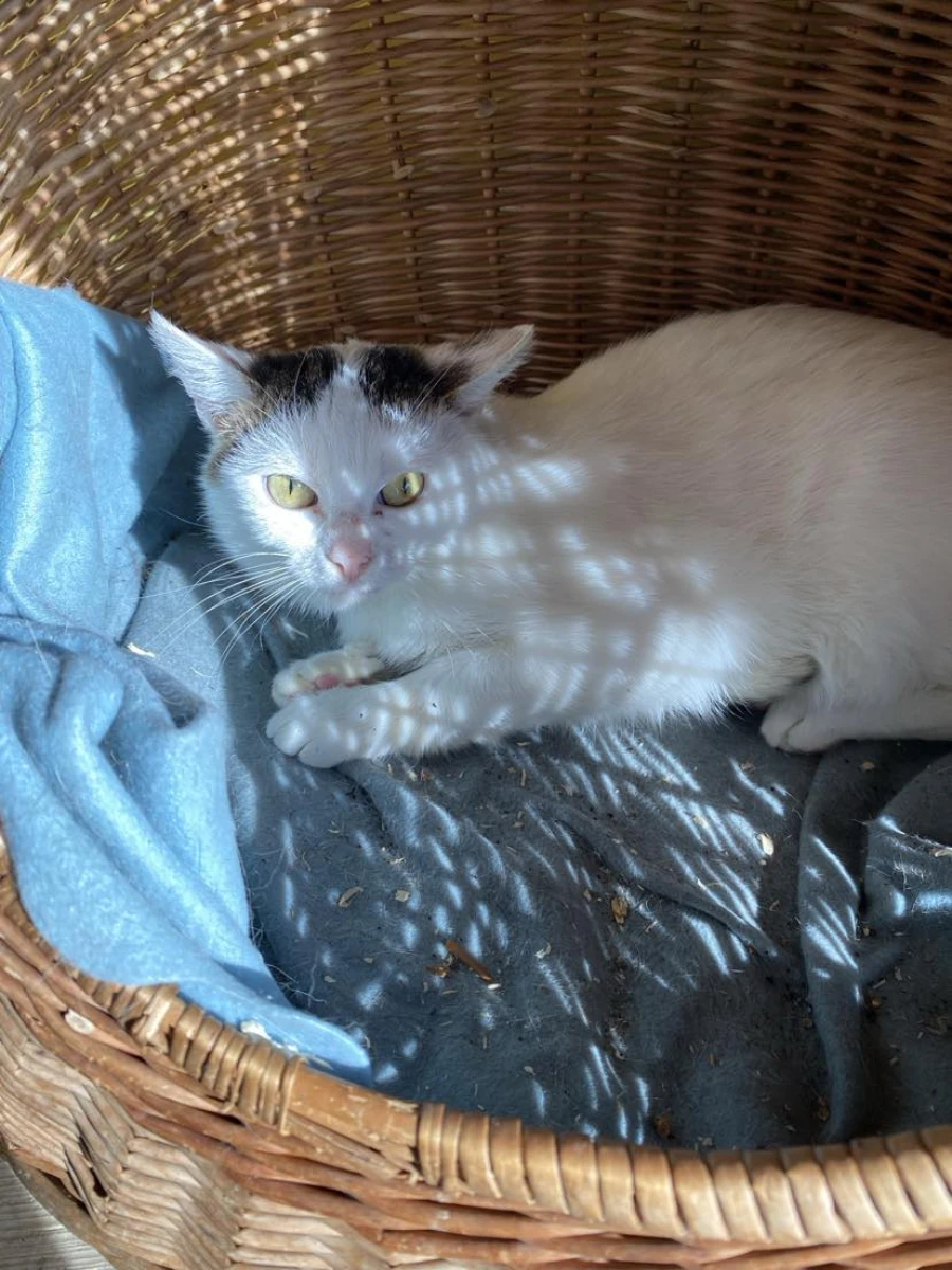 Śnieżek to młodziutki kocurek, od niedawna w schronisku, ma niespełna rok. Został znaleziony.
