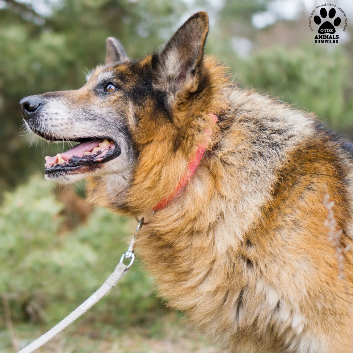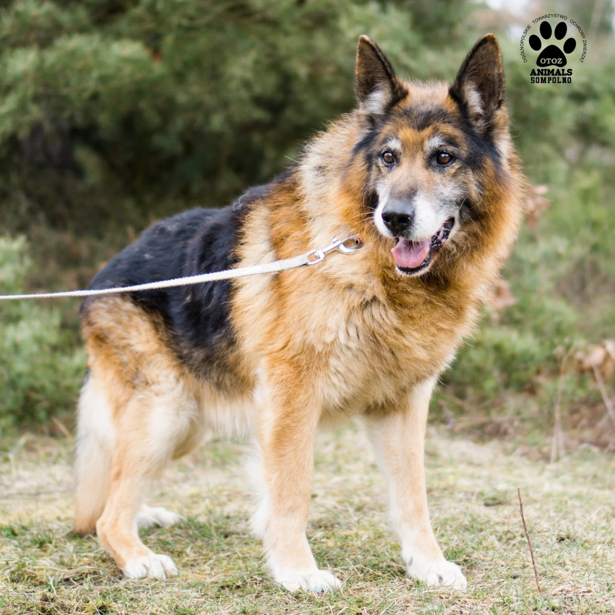 Bajron trafił do nas 21 marca z gminy Sompolno. Ma około 13 lat i jest w typie owczarka niemieckiego. Jego historia poruszyła nas wszystkich – został uratowany ze zbiornika wodnego, w którym się topił… Był w bardzo złym stanie: skrajnie zaniedbany, z przerośniętymi pazurami, z czego jeden był zerwany, obolały i wycieńczony.