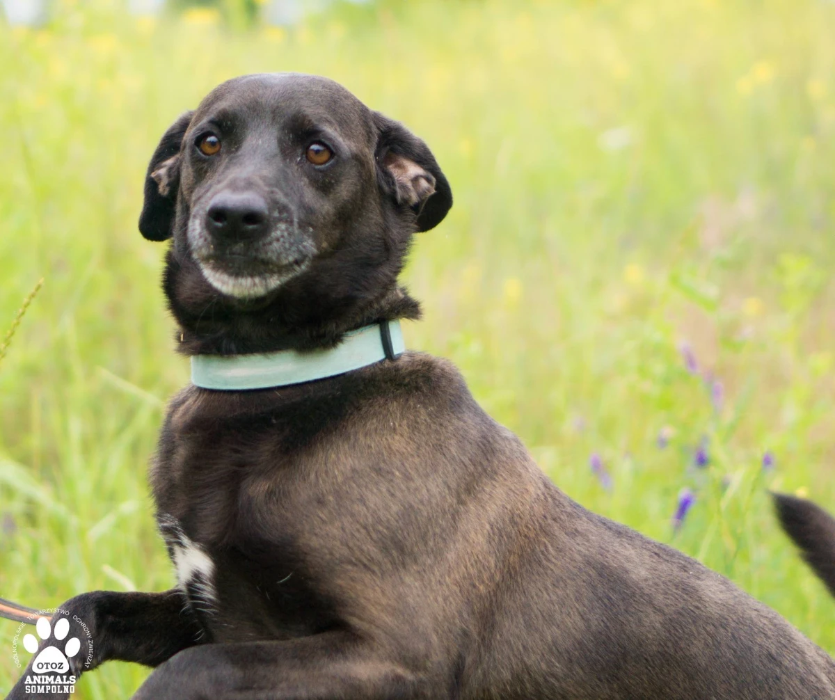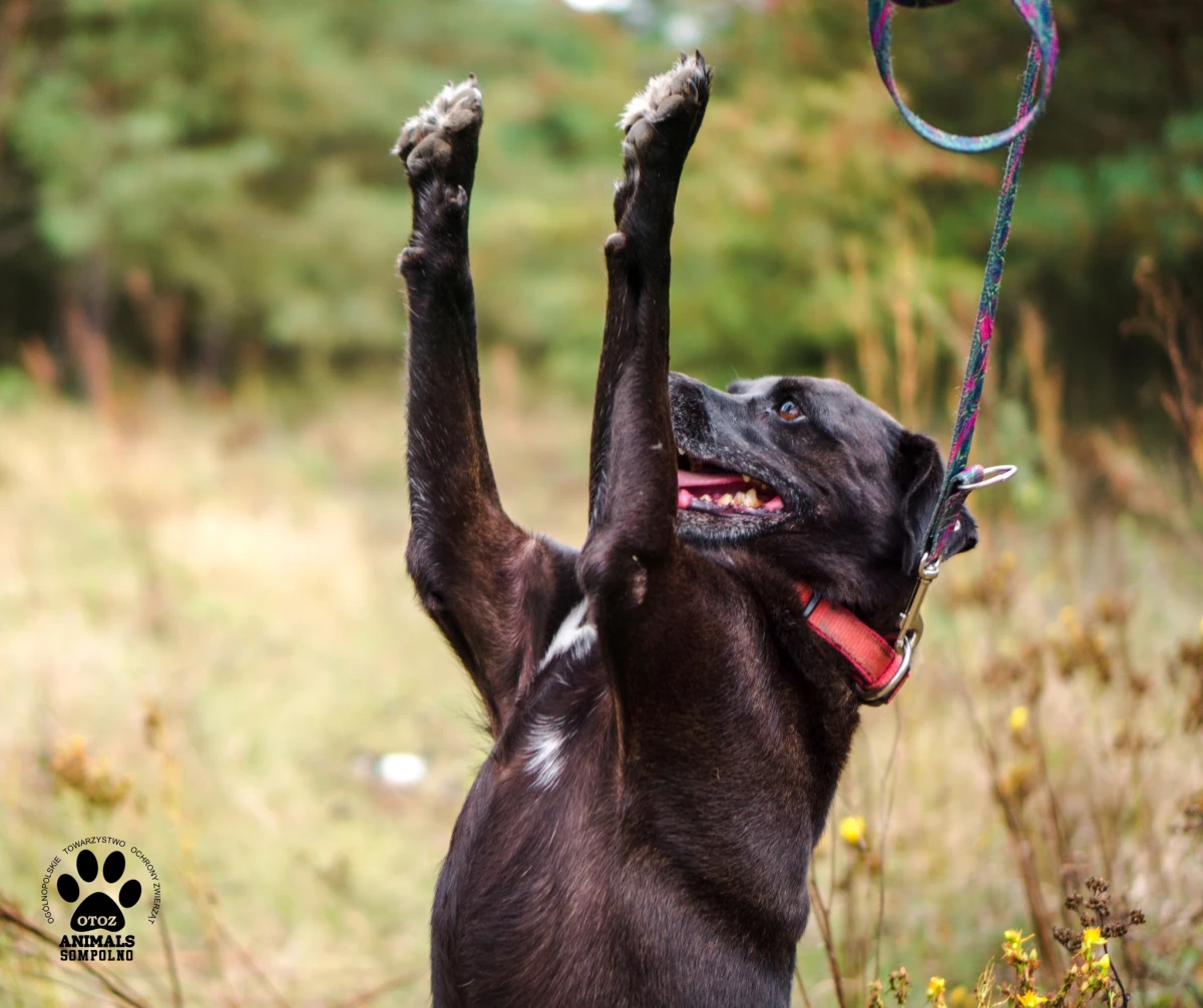 Jest wesoły i przyjazny wobec ludzi, lubi spędzać czas z opiekunami. Z radością na nas skacze i prosi o zabawę!