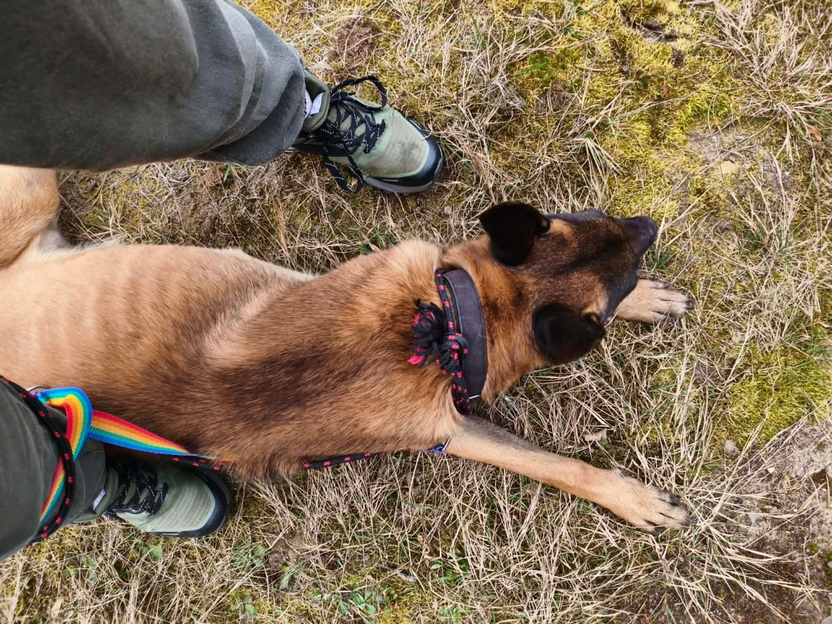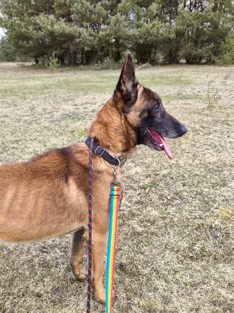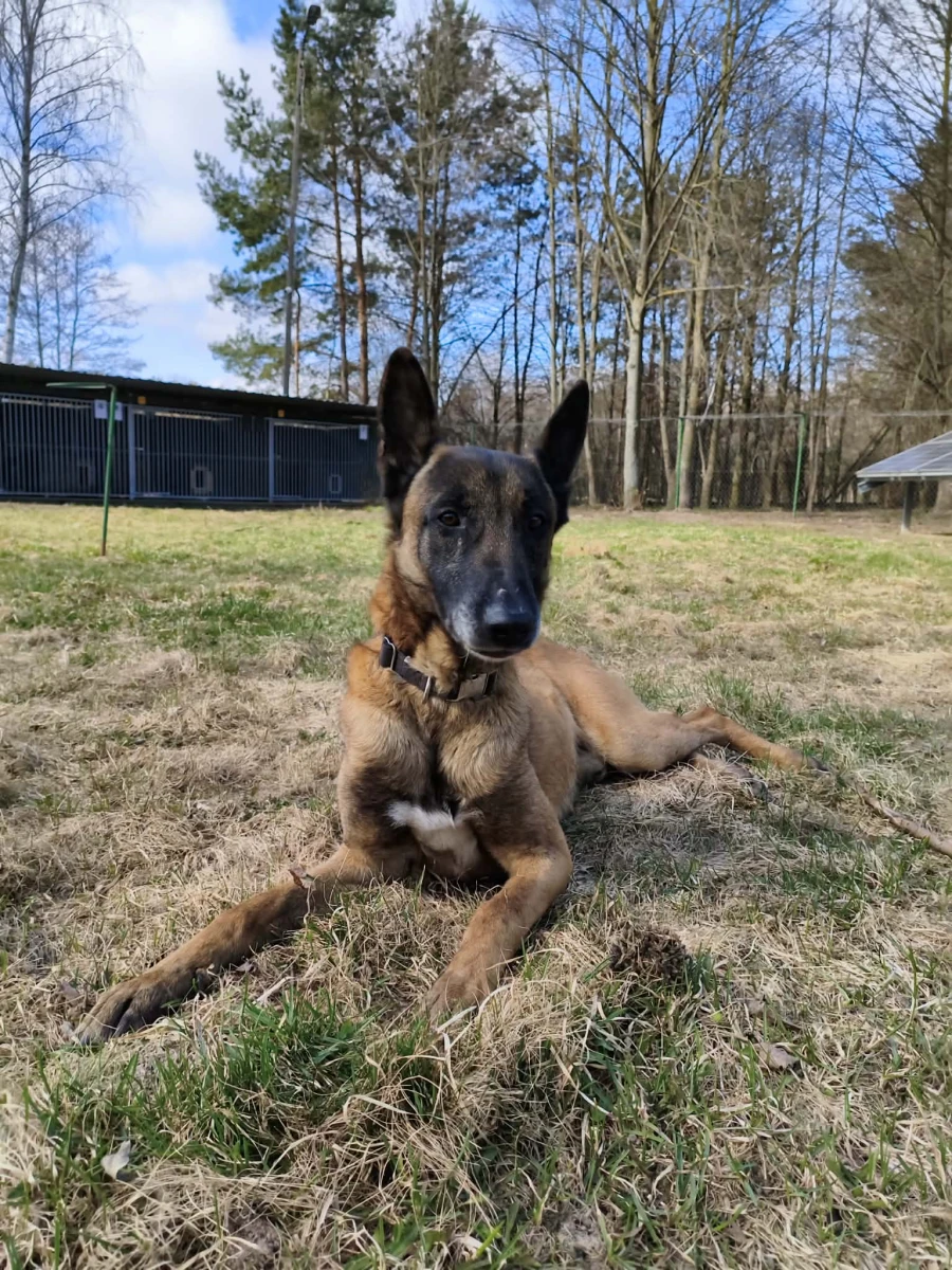 Sierżant to około 3-4-letni pies w typie owczarka belgijskiego, który trafił do nas po znalezieniu na wsi. Nikt się po niego nie zgłosił, choć od razu było widać, że ktoś kiedyś włożył w niego sporo pracy. To pies, który zna komendy na poziomie, o jakim większość „zwykłych burków” może tylko pomarzyć. Reaguje błyskawicznie, pracuje z ogromnym zaangażowaniem i ma w sobie tę charakterystyczną dla rasy gotowość do działania, zanim człowiek zdąży dokończyć myśl.