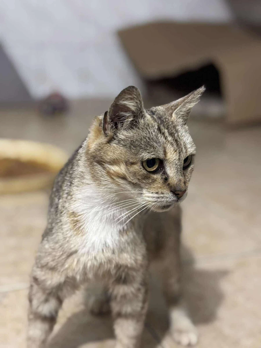 Sandy to ok. 4-letnia kotka, która od kilku tygodni mieszka w schronisku. Mimo młodego wieku sporo w życiu przeszła, a mimo to nadal jest pozytywnie nastawiona do całego świata. Sandy przed przybyciem do schroniska była bezdomna i widać po niej, że życie nigdy jej nie oszczędzało. Ma wybite zęby, jest wychudzona, na całym ciele ma pełno blizn i ran, a przy kastracji okazało się, że ma (miała) guzy w jamie brzusznej. Dziś jest już w pełni zdrowa, nabiera sił i masy, co oznacza, że powoli rozgląda się za nowym domem; być może pierwszym w życiu.