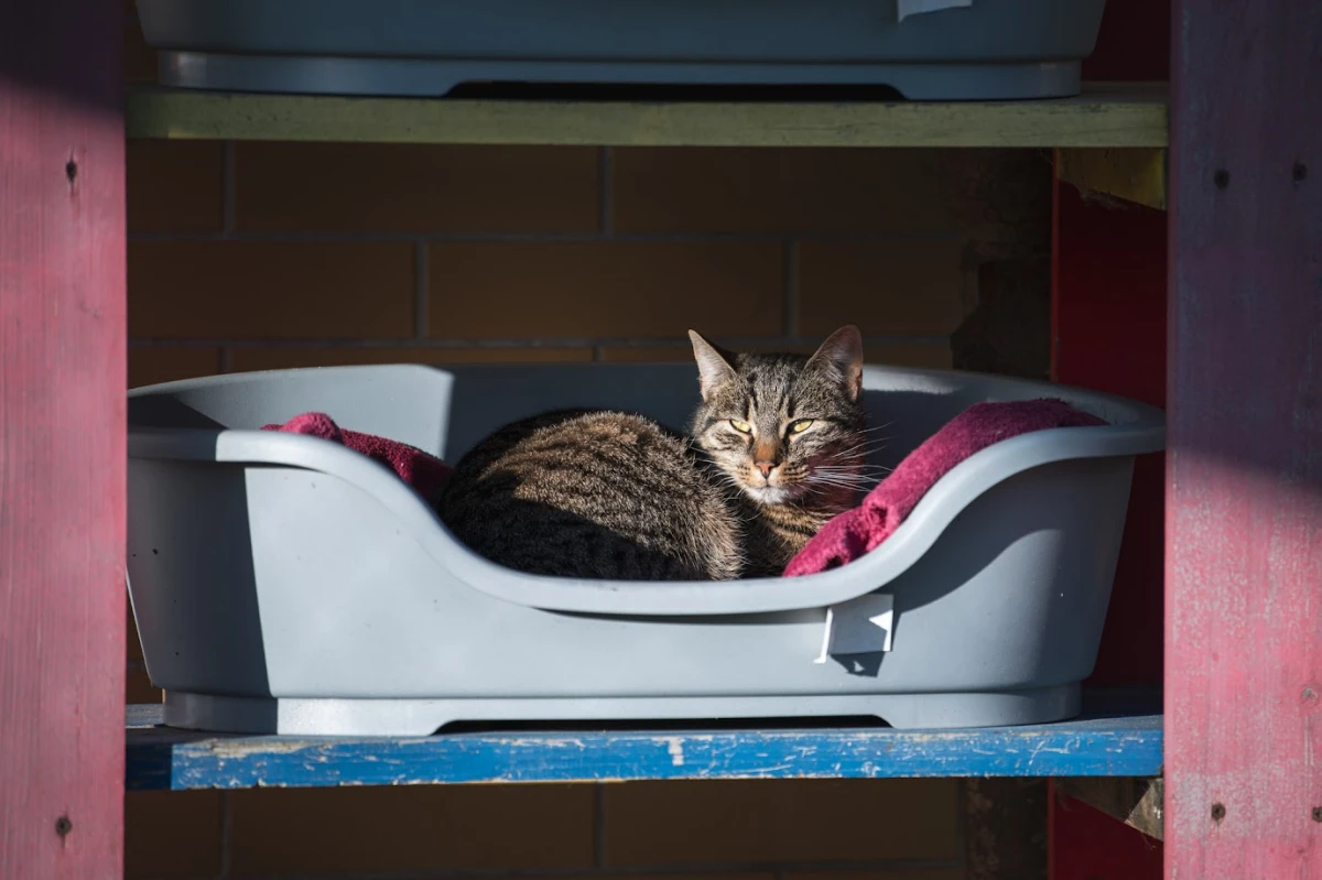 Jak by nie patrzeć, Zibi jest bardzo ładnym klasycznym burym kotem . Niestety mało kto widuje go w pomieszczeniu. Na razie spędza większość czasu na wybiegu. Jest oczywiście nieoswojony, ale to bardzo młody kot, dlatego jest nadzieja na zmiany. Tym bardziej, że niebawem zrobi się po prostu chłodniej i wtedy może przeniesie się do pokoju.