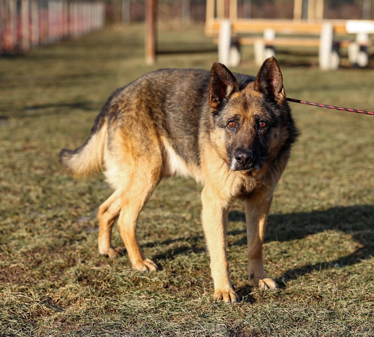 Pies, ok. 8 lat. Spokojny, nieco zamknięty w sobie, w typie owczarka niemieckiego. Cichy, grzeczny, bardzo dużo odpoczywa korzystając z legowisk
