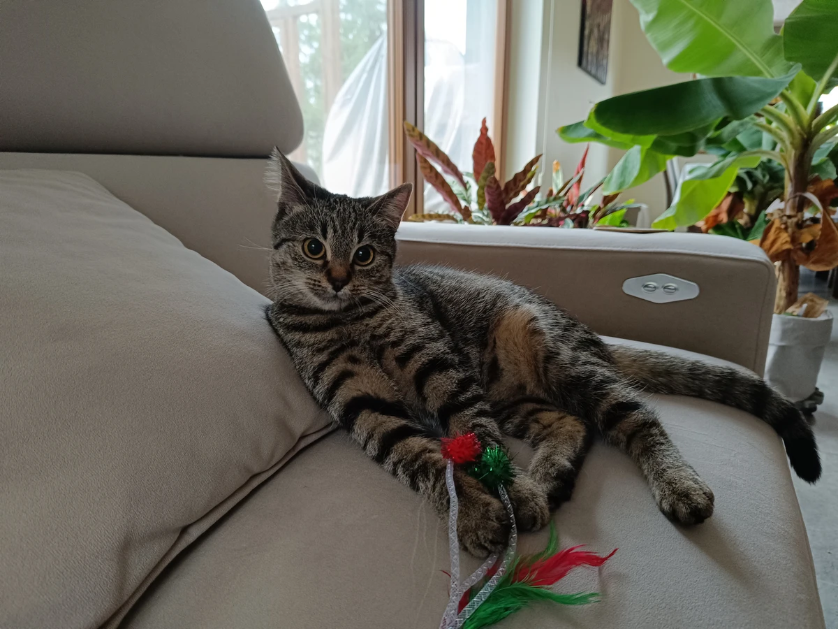 Ahsoka to prawdziwy żywioł. Kotka chętnie się bawi, szaleje za myszkami, piłeczkami, wędką - energia ją rozpiera, codzienne zabawy z opiekunem to obowiązkowy punkt każdego dnia. Ahsoka chętnie uczestniczy w aktywnościach ludzkich, jest stałą bywalczynią kuchennych blatów, zlewu i stołu, a także łóżka. Jest ciekawską kicią, wszystko musi zobaczyć i sprawdzić . To amatorka roślinności w domu - żadna roślina nie uchowa się przed jej zainteresowaniem. Ahsoka to młoda kotka, która odnajdzie się jako jedynaczka, ale także w kocim stadzie z odważnymi i zabawowymi kotami. Akceptuje dzieci starsze, mniej hałaśliwe.