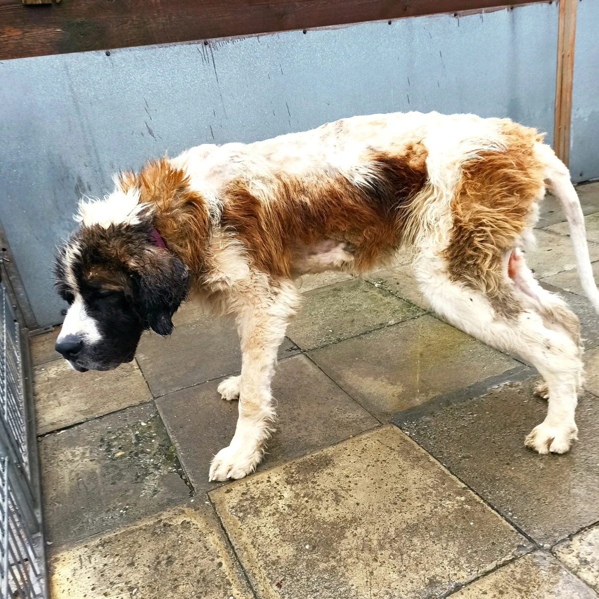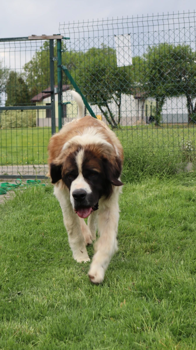 Bąbel Nie będziemy opisywać okoliczności w jakich trafił do nas Bąbel, sytuacja jest zagmatwana i mało istotna. Ważne że pies w schronisku ma lepsza opiekę niż w tzw. „domu”. Bąbel trafił do nas z łatką psa agresywnego, co w zderzeniu z jego posturą nie wróżyło dobrze. Koniec końców okazało się że owszem, jest psem nieufnym do obcych, lecz mówienie o nim „agresywny” jest sporym nadużyciem. Bąbel jest mieszańcem, ni to bernardyn, ni to moskiewski stróżujący. Waży na razie 47 kilogramów, co w przypadku bernardyna jest sporą niedowagą, w przypadku moskiewskiego mieści się w dolej granicy normy przy jego wysokości w kłębie. Jest odrobaczony, odpchlony, zaszczepiony, zaczipowany i wykastrowany. Długo wahaliśmy się, czy umieszczać jego zdjęcia, ale stwierdziliśmy, że trzeba pokazywać stan psów rzeczywisty, nie upiększony. Bąbel trafił do nas brudny, śmierdzący, z potwornymi kołtunami i filcem. Powinien być ostrzyżony do zera i odrastać, niestety tak duży pies u nas może być tylko w kojcu zewnętrznym z dostępem do budynku z budami, ale niestety bez ogrzewania. Kąpiel w ogóle na razie nie jest możliwa. Zrobiliśmy więc to co jest na razie niezbędne. Nie dało się Bąbla wystrzyc „na żywca”, więc wykorzystaliśmy moment kastracji, do której pies miał podana narkozę. Liczył się czas. Łatwo nie było. Filc prawie przyklejony do skóry, mokry, w filcu nieżywe już larwy robaków, o truchłach pcheł i ich odchodach nie wspominając, odparzenia. Co mogliśmy to zrobiliśmy. Skóra uwolniona, oddycha. Za jakiś czas, gdy się ociepli wystrzyżemy go do zera, będzie odrastał, bo niestety to jedyna opcja. Gabinet weterynaryjny, my, pani wet i Bąbel po strzyżeniu to był dramat. Ociekaliśmy brudną wodą, śmierdzieliśmy potwornie. Nie piszemy tego by się chwalić, ale z doświadczenia wiemy, że zaraz pojawią się posty o oszpeceniu psa, o nieprofesjonalnym obcięciu, że tak się nie robi. To nie salon piękności dla psów a schronisko, liczy się nie uroda a w miarę możliwości poprawienie komfortu życia psa. W galerii zdjęcie Bąbla sprzed trzech lat, gdy przez moment był w schronisku. Tak będzie wyglądał gdy odrośnie. O Bąblu. Ma 5 lat. To pies nieufny do obcych, jednak w stosunku do pracowników i wolontariuszy nie wykazuje najmniejszych oznak agresji. Nie broni zasobów. Lubi zabawki i kontakt z człowiekiem. Zdecydowanie adopcyjny. Szukamy mu domu odpowiedzialnego, ludzi którzy zapewnią mu odpowiednie warunki do życia i opiekę. Złe domy i nieodpowiedzialnych właścicieli już miał.