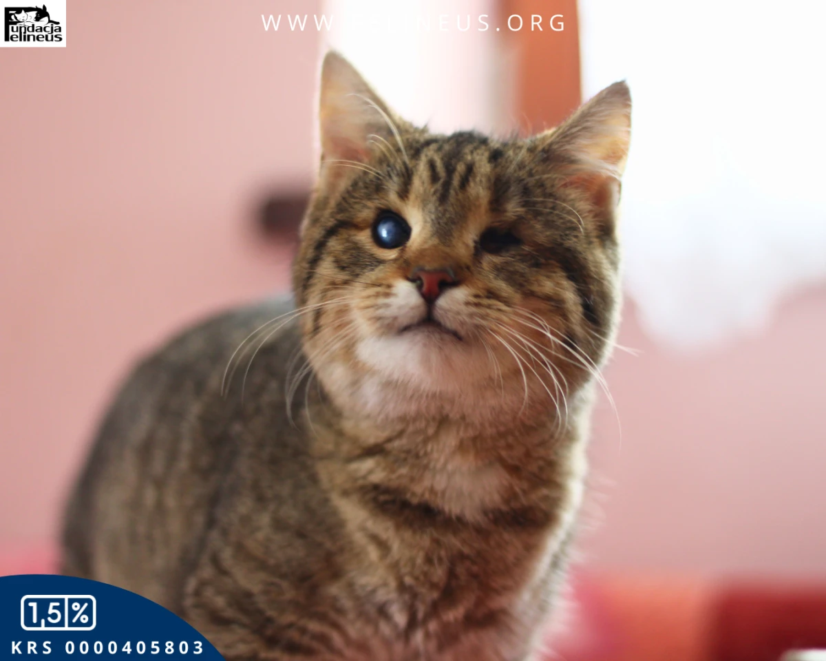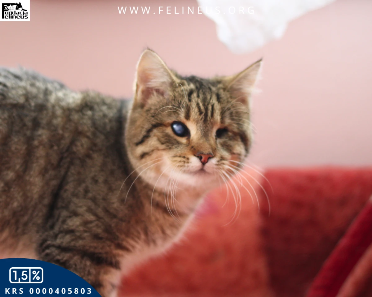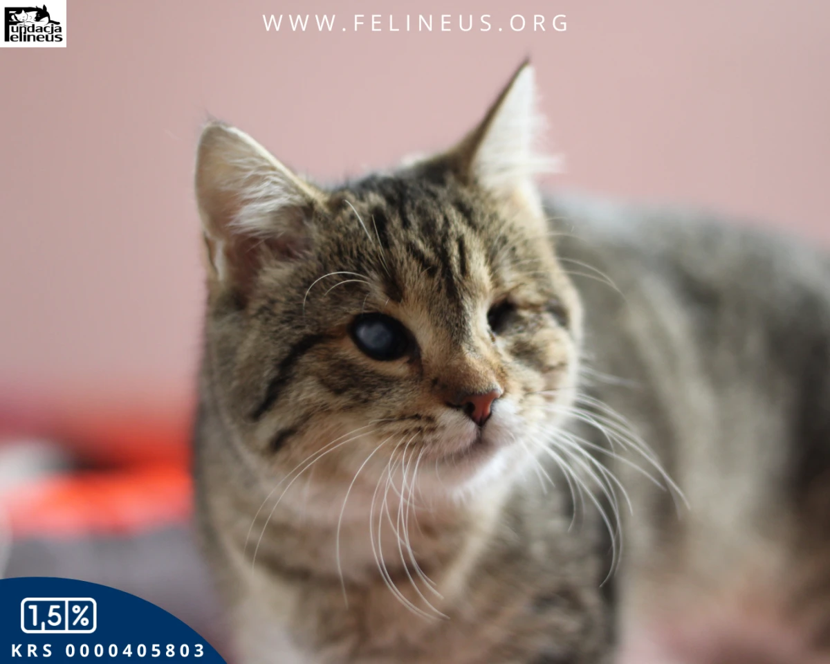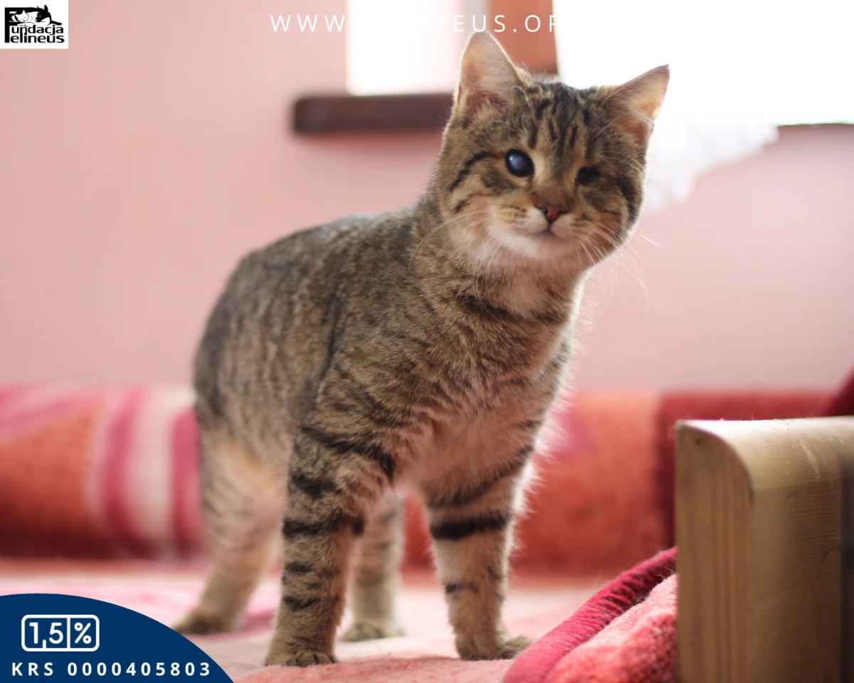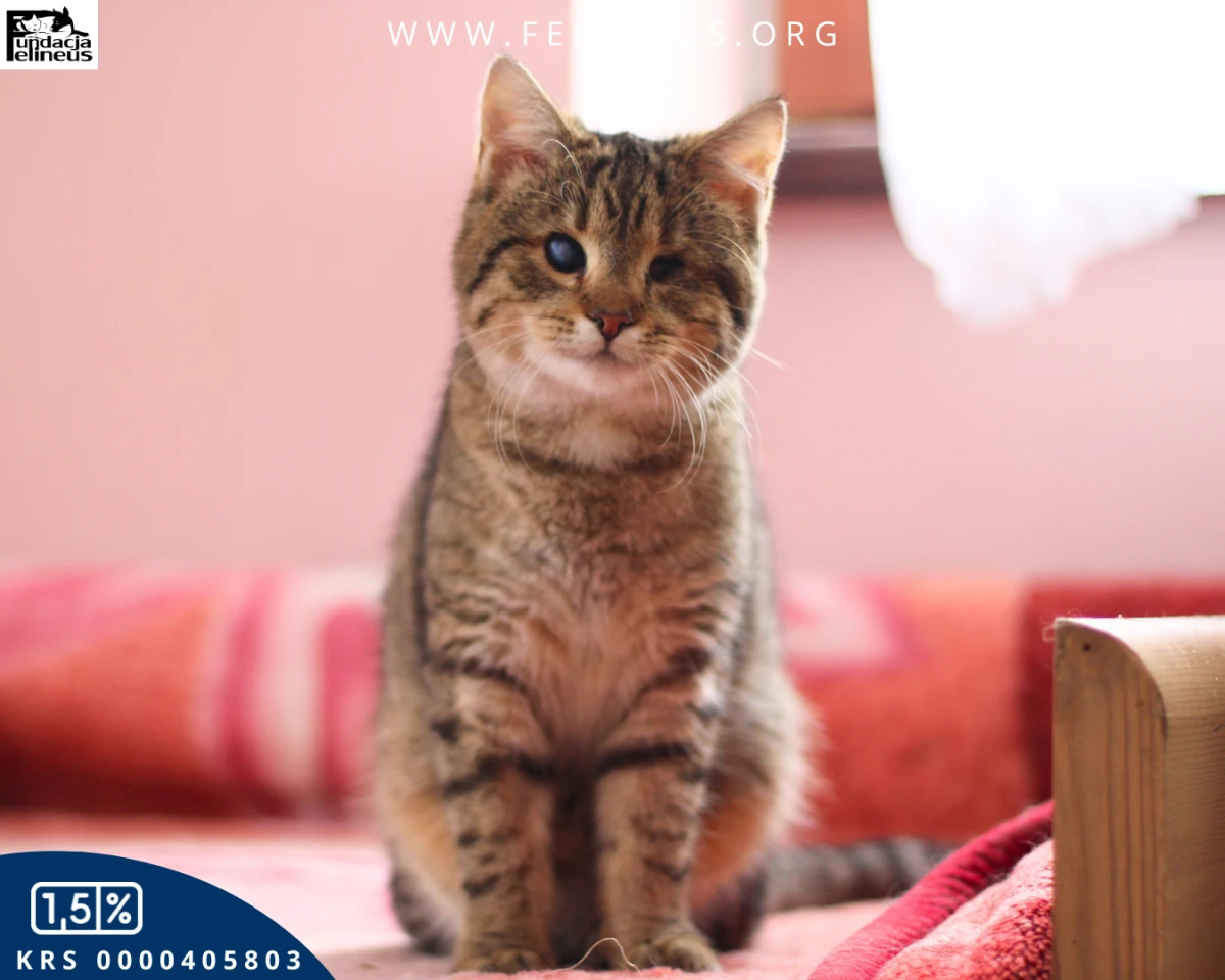 Bejbi czyli bure misiowate kociątko, które patrzy sercem. Ta kochana i rozbrykana kicia, urodzona w maju 2025 roku, to prawdziwy wulkan energii. Choć jest niewidoma, absolutnie nie przeszkadza jej to w niczym. W mig eksploruje nowe przestrzenie, a po chwili porusza, a raczej biega, po nich swobodnie. Uwielbia szeleszczące i dzwoniące zabawki i naprawdę trudno utrzymać ją w bezruchu. Bez problemu wspina się na wysokie drapaki i nigdy nie zdarzyła się jej kuwetowa wpadka! Słowem kot idealny. Bejbi jest bardzo ciekawska i towarzyska, lubi towarzystwo człowieka i innych kotów. Kotusia szuka bezpiecznego i kochającego domu, w którym ktoś popatrzy na nią tak jak ona patrzy na świat – czyli sercem.