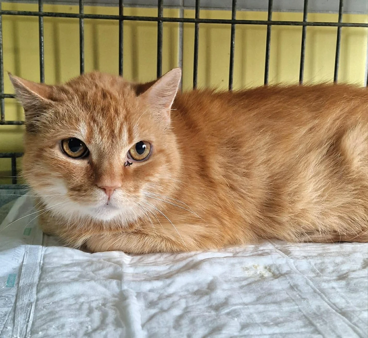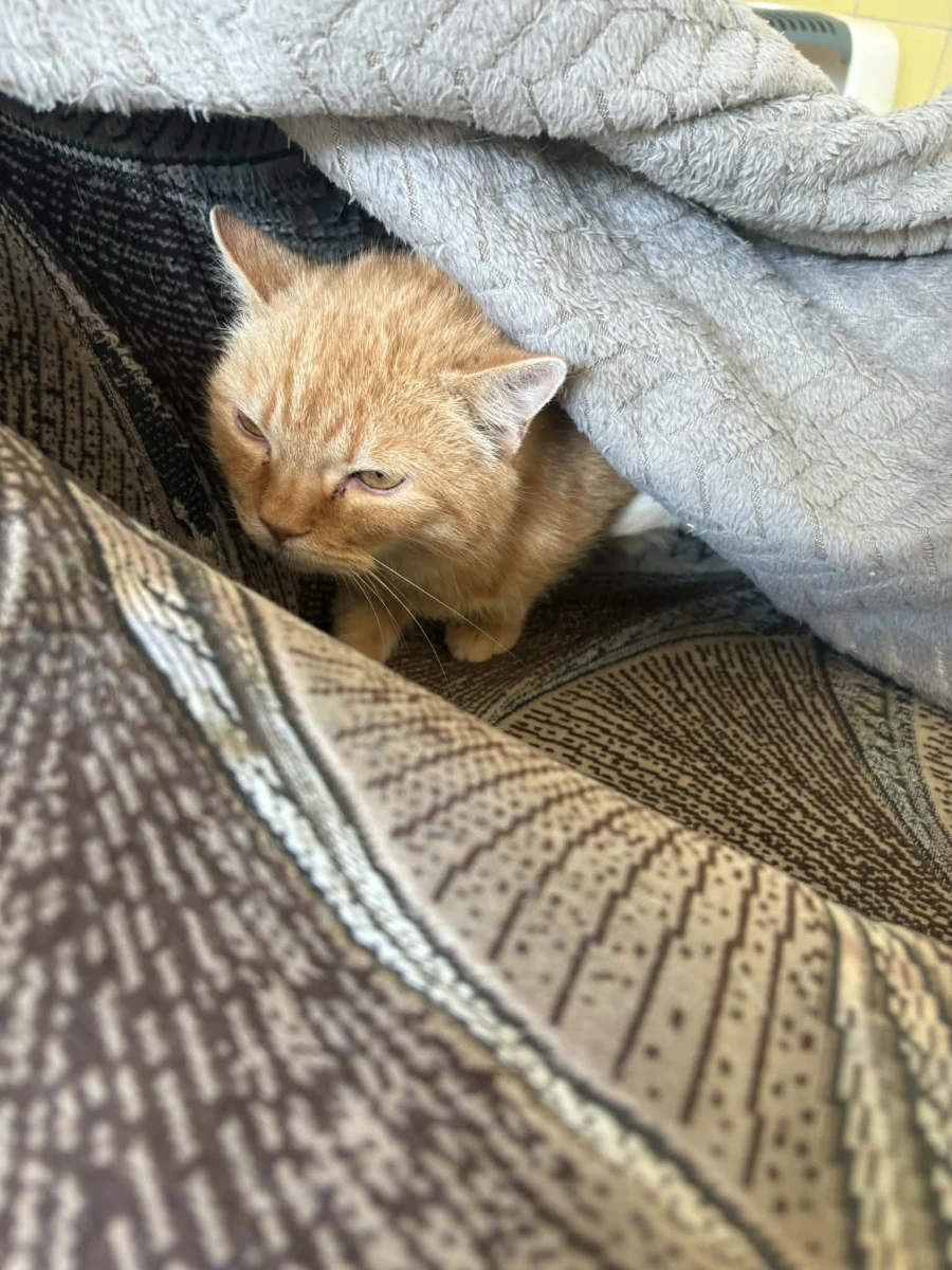 Pilnie potrzebuje domu i czeka (niestety najczęściej ukryty pod kocykiem) w pokojach 5,6 (wspólny wybieg), kociarnia nr 3.