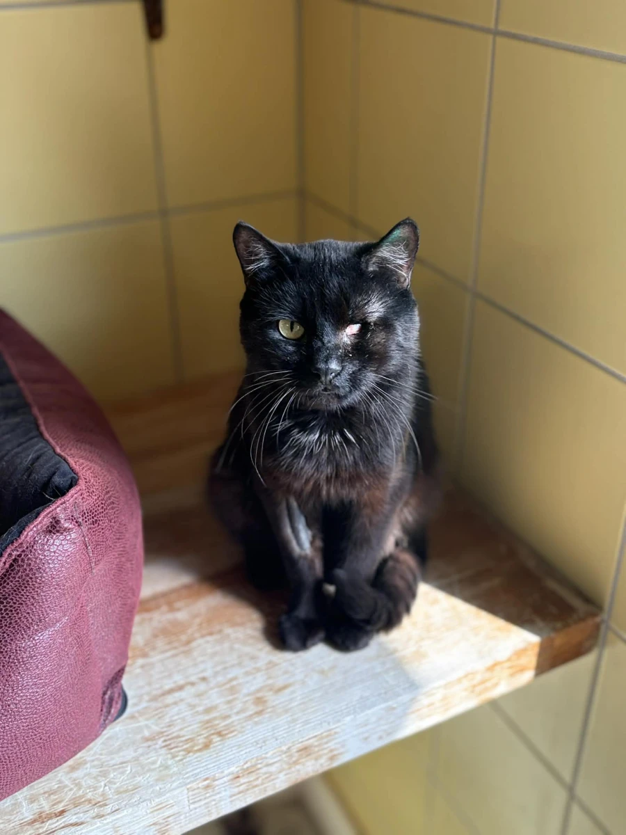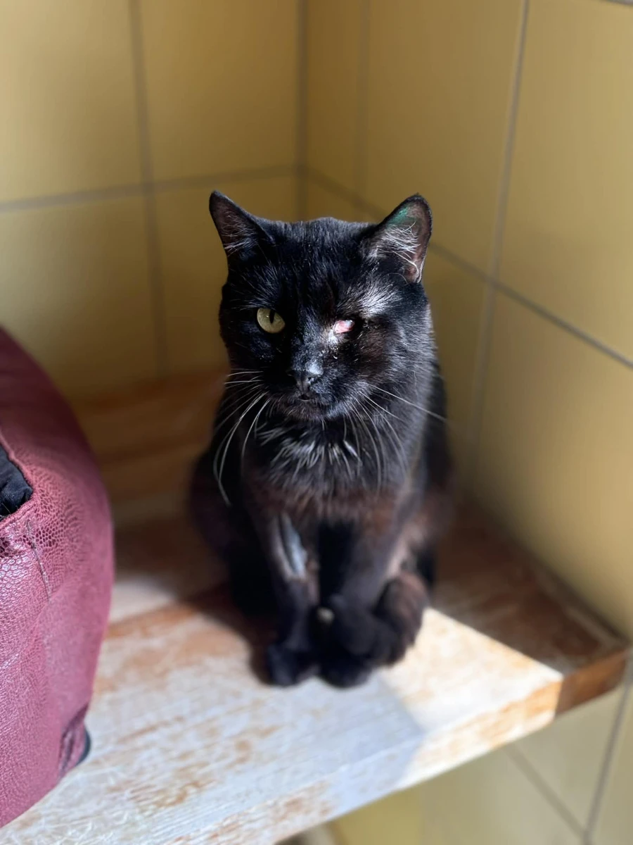 Brokuł, ok. 4 lata, kocurek bez oka z interwencji (46 kotów w mieszkaniu).