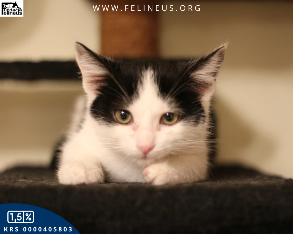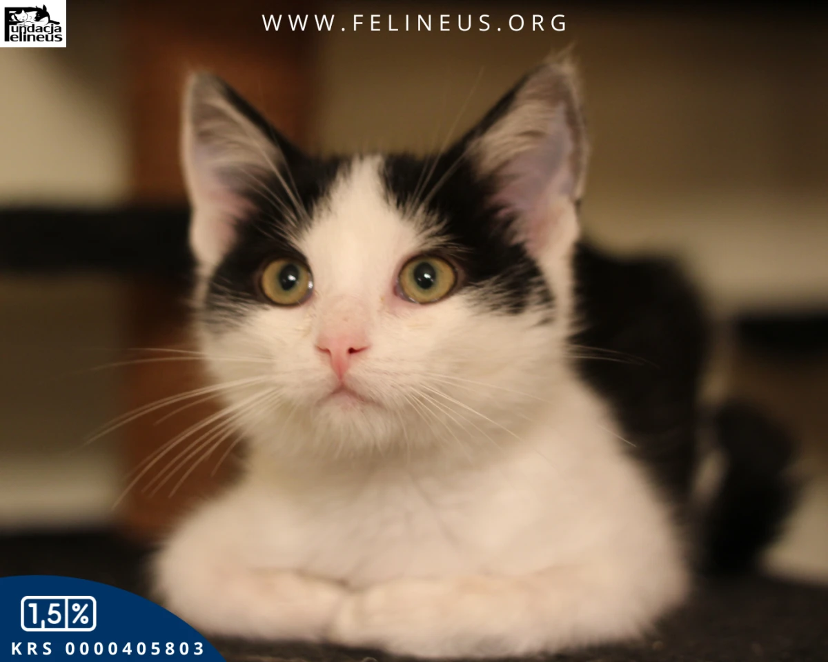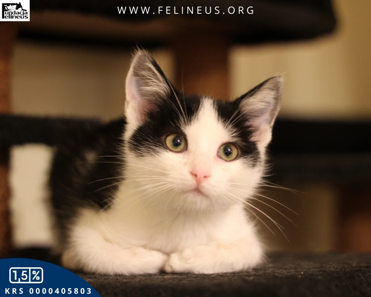 Bumerang to młody rozrabiaka urodzony w lipcu 2025. Jak każdy koci maluch uwielbia zabawę, pełną miseczkę i inne koty do zabawy. Jest nieśmiały w stosunku do obcych ludzi. Przy opiekunach czyni postępy - najpierw udaje niezależnego kota, a potem wzięty na ręce pozwala się przytulać i głaskać. W nocy cała nieśmiałość z niego uchodzi, bo trzeba wejść człowiekowi do łóżka.