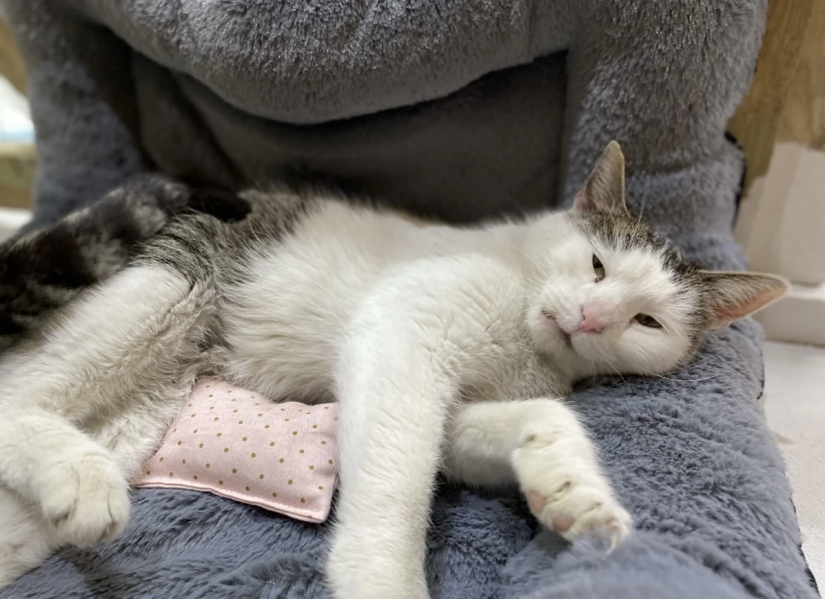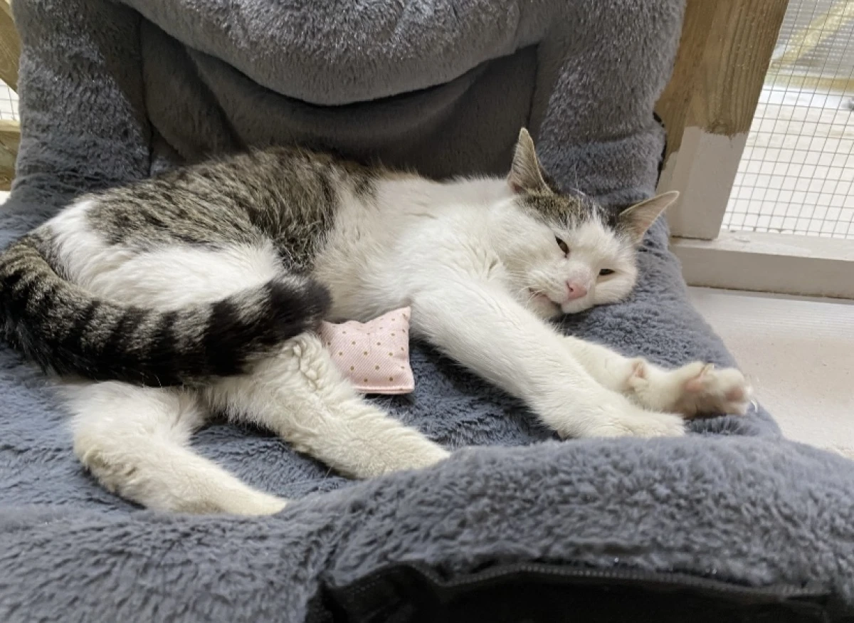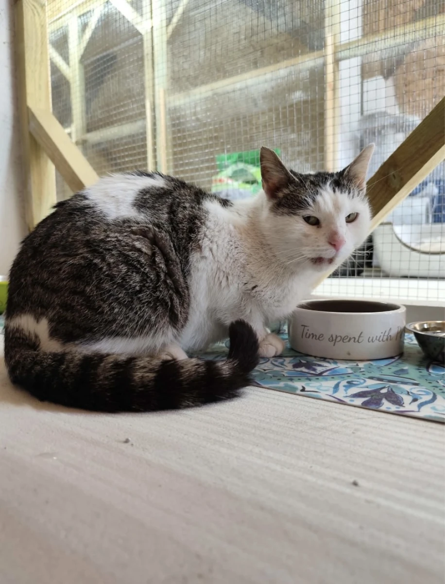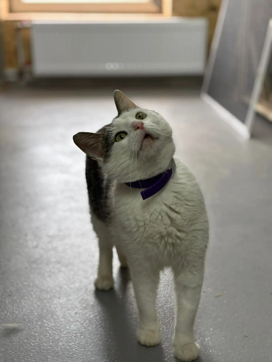 Najprawdopodobniej nigdy nie miała domu i była typowym „kotem wioskowym”. Choć bardzo lubi kontakt z człowiekiem, widać, że ciągła uwaga opiekuna jest dla niej czymś nowym i jeszcze nie do końca zrozumiałym.