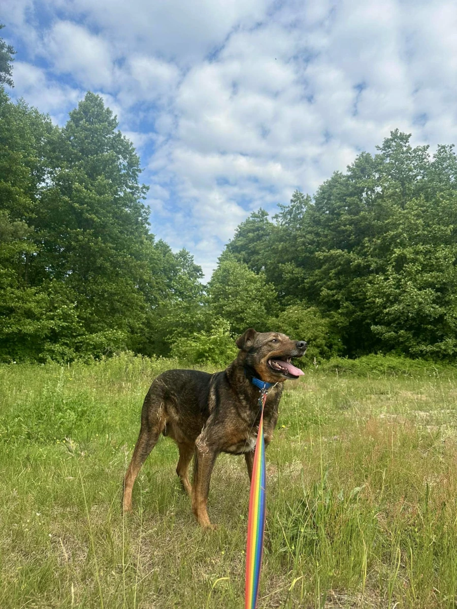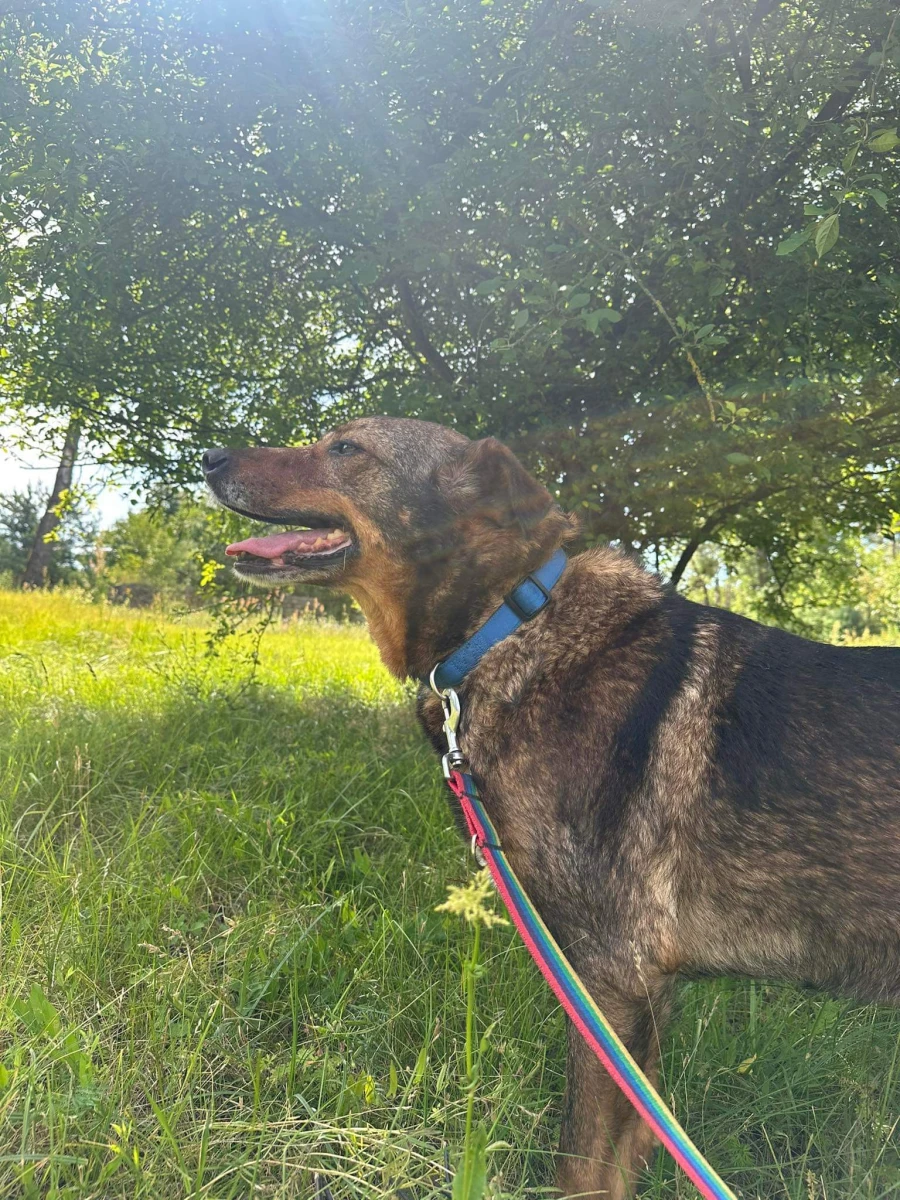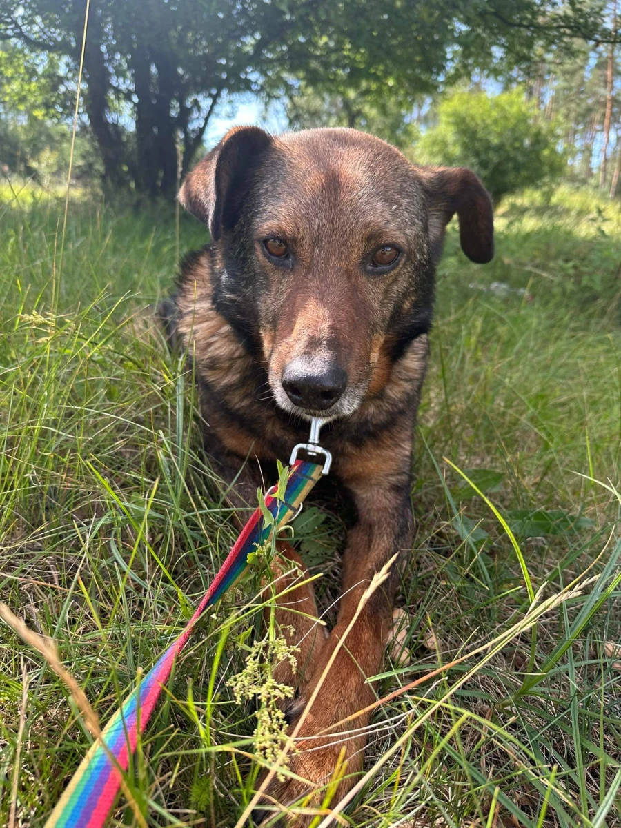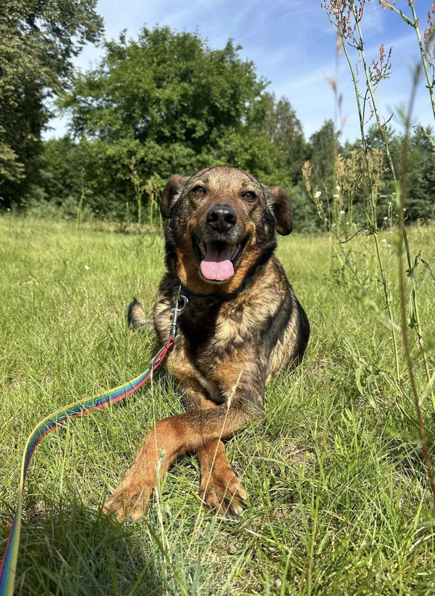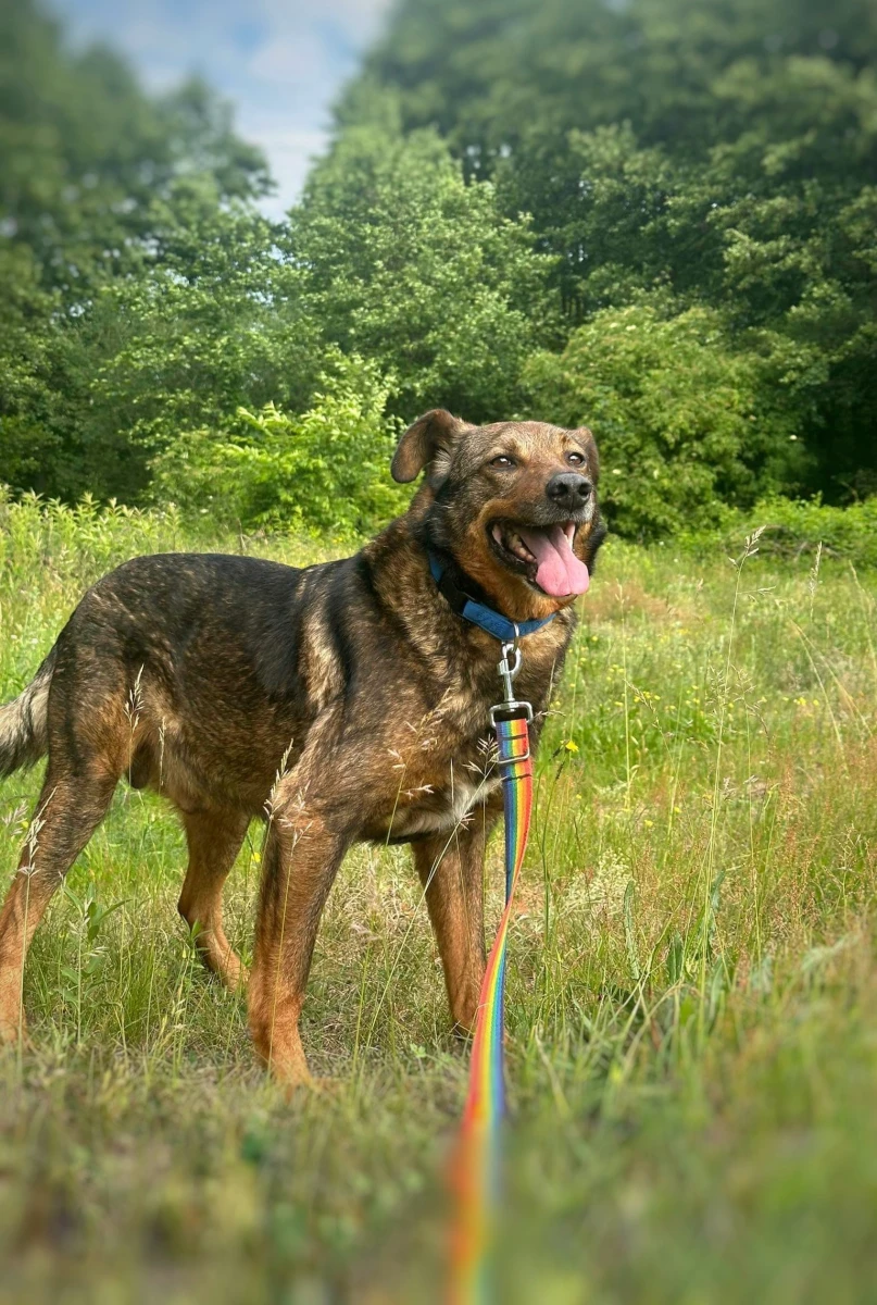 Ten uroczy dżentelman jest uśmiechniętym, pozytywnym, łagodnym i nienachlanym psem, który najlepiej czuje się wśród ludzi. Pięknie zachowuje się do człowieka, nie ma w nim żadnej agresji. Może zamieszkać w domku z dziećmi. :) To psiak stworzony dla całej rodziny! Powerek został oceniony na ok. 8 lat i jest zdrowy jak ryba. ;) Uwielbia być głaskany. Z przyjemności mruży oczka, gdy głaszczemy go pod głową. Pcha się na kolana, chce być jak najbliżej człowieka. Power bardzo ładnie chodzi na smyczy i delikatnie częstuje się smaczkami z ręki. Ma spory apetyt i za smakołyki nauczy się wielu komend. :) Ma ogromny potencjał do nauki. Jest bardzo mądry i grzeczny. Na spacerach chodzi blisko nogi, a gdy się oddali, wystarczy go przywołać i wraca do opiekuna. Stara się zachowywać czystość w kojcu, załatwia się poza nim. Waży 25 kg, to taki zgrabny średniaczek. Mieszka w kojcu z suczką Zarą. Power bardzo lubi inne psy. Mógłby zamieszkać w domu z drugim psem. Nie zwraca uwagi na koty. Bardziej od psich kolegów zainteresowany jest otoczeniem i towarzyszącym mu człowiekiem. Ma swoje ulubione miejsce na drewnianym podeście. Potrafi na nim przeleżeć całe dnie, ale tylko wtedy, gdy nie ma nic do roboty. Prócz leżakowania musi przecież być na straży i prężyć się do odwiedzających. ;) Power lubi wychodzić na wybieg, eksplorowanie nieznanych terenów i poznawanie nowych zapachów sprawia mu wiele radości. Po wyjściu chodzi z nosem przy ziemi, węszy i tropi. Lubi tarzać się w trawie, eksploruje nieznane niczym dziecko. ;) Jest średnio aktywny, nigdy nie pogardzi spacerkiem. Powerek idealnie sprawdziłby się jako piesek do towarzystwa dla osoby starszej. :) To piesek, który nikomu nie wadzi, nie wchodzi nikomu w drogę i jest bezproblemowy. Nie jest wymagający. Do szczęścia wystarczy mu ciepły kącik, pełna miska i kochający właściciel. To cudowny, wdzięczny i poczciwy pies, który nie widzi świata poza człowiekiem. Mamy nadzieję, że jego wiek i rozmiar nie przeszkodzą mu w znalezieniu nowego domu…