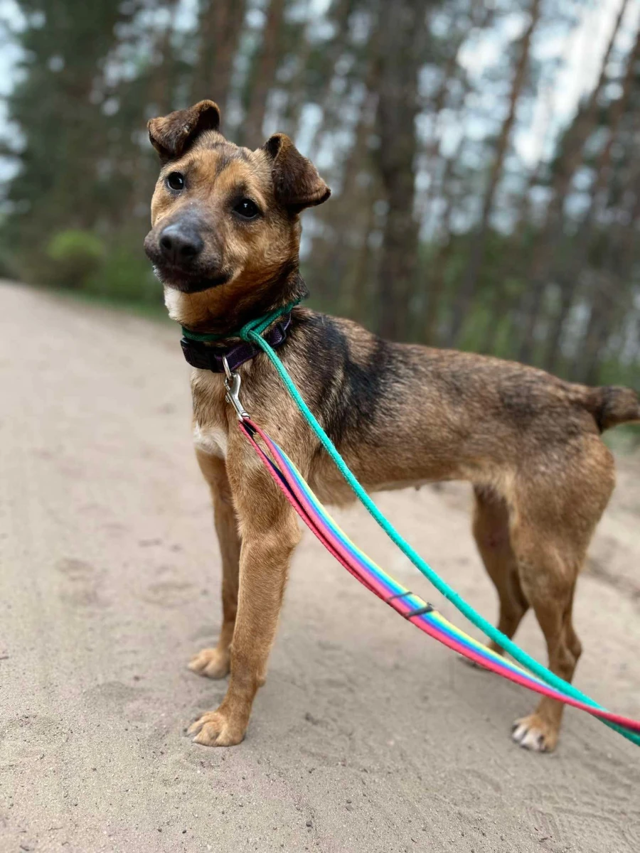 Enya to ok. roczna sunia o niezwykle przyjacielskim i ufnym charakterze. Została znaleziona na wsi, więc nie wiemy wiele o jej przeszłości. Oceniając po zachowaniu i pozytywnym nastawieniu Enii do świata, uważamy, że suczka nie ma negatywnych wspomnień z ludźmi. Jest śmiała, ufna, wesoła. Pełna optymizmu i najszczerszych, pozytywnych uczuć. Oddana i bardzo, ale to bardzo proludzka. Wita nas zawsze radośnie, nie mogąc doczekać się kolejnych spotkań. To przekochana sunia, która docenia wszelkie najdrobniejsze gesty z naszej strony. Wystarczy, że jesteśmy obok i siada przy nas, ciesząc się każdą wspólną chwilą. :) Enya jest jeszcze psim dzieciakiem, który ponad wszystko chce być z człowiekiem. Z radości skacze, zakłada łapy na kolana i czeka na porcję pieszczot.