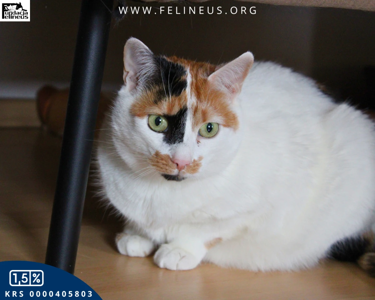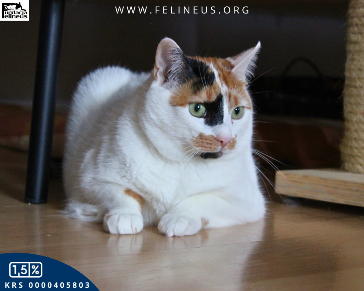 Evelyn - koteczka urodzona w 2019 roku. Bardzo spokojna i niekłopotliwa. Potrzebuje jednak nieco czasu na aklimatyzację, a przede wszystkim domu spokojnego, bez małych dzieci, których nieco się boi. Za to w stadzie kotów odnajduje się bardzo szybko. Uwielbia zabawy w kocim towarzystwie oraz wspólne drzemki. Kotka jest wykastrowana, zaszczepiona na choroby wirusowe, zaczipowana. Odrobaczona i odpchlona. Kontakt do opiekunki: 668575589