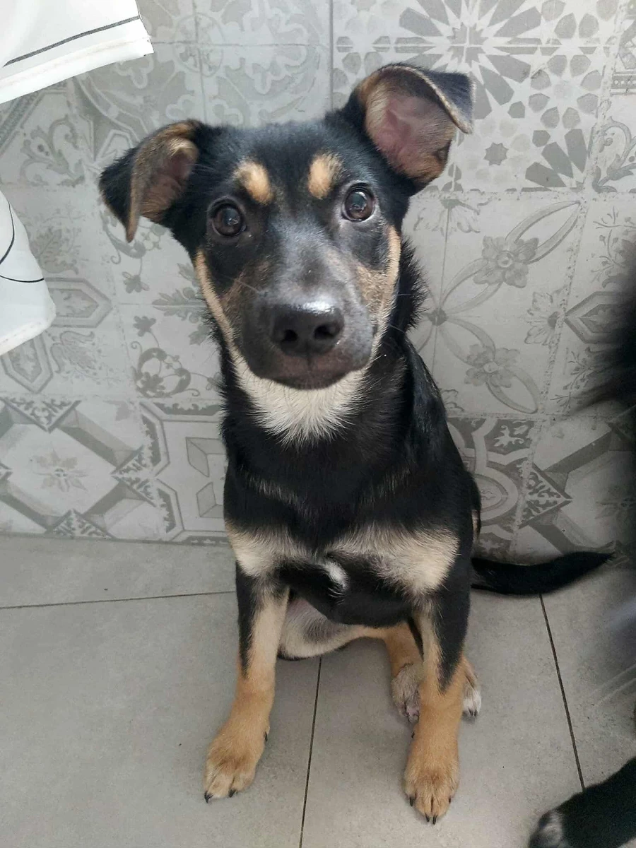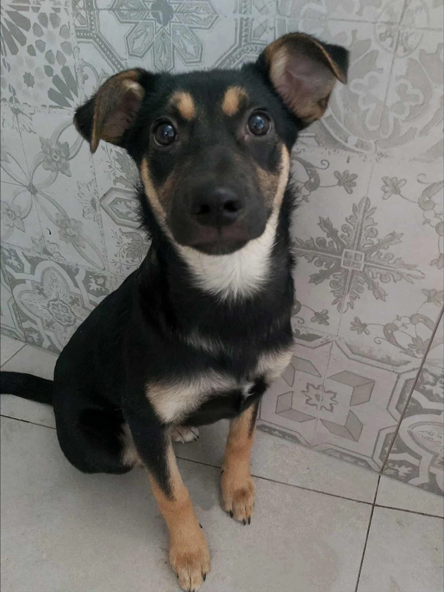 Jest czarno-brązową sunią, która wyrośnie na średniej wielkości psa.