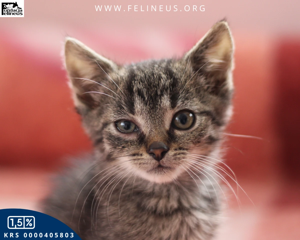 Finix - kocurek urodzony w sierpniu 2025 roku. Największy z rodzeństwa, zaradny i bardzo towarzyski.  Finix jest bardzo związany z człowiekiem, między innymi dlatego, że od 3 tygodnia życia to człowiek zastępował mu kocią mamę. Dla kociaka szukamy domu, w którym dostanie miłość i opiekę. Może zamieszkać sam lub z kocim/psim towarzyszem.