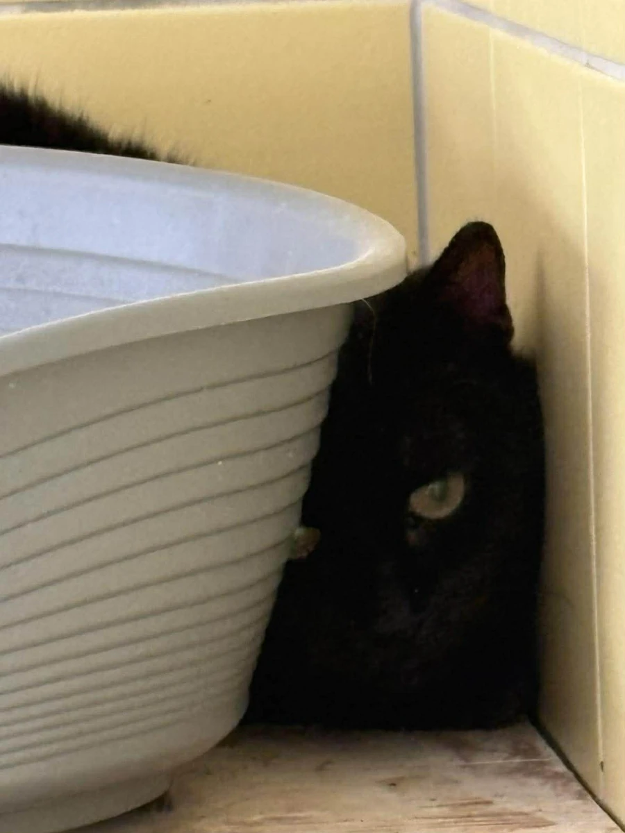Kocurek mocno przeżywa swój pobyt w  schronisku. Jest zestresowany, nieufny, unika ludzi. Ciężko zrobić mu zdjęcie.