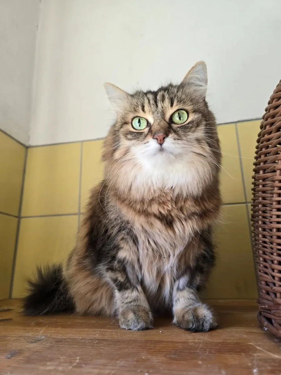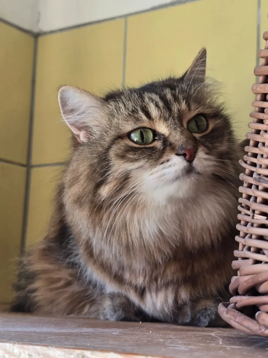 Na co dzień jest spokojną i cichą kocią seniorką, która nie szuka konfliktów i raczej obserwuje świat z bezpiecznej odległości. Widać jednak, że pobyt w schronisku bardzo ją przytłacza – nowe miejsce, zapachy i dźwięki sprawiają, że potrzebuje czasu, by poczuć się pewniej.