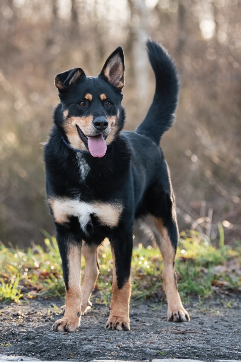 Karim z wyglądu to mieszanka huskyego i owczarka. Jest zdrowy - RTG stawów idealne. To młody pies, spontaniczny, pełen werwy i gotowy do działania. Karim jest bardzo energiczny i skory do nauki. Niestety, warunki schroniskowe nie są w stanie zapewnić mu spełnienia jego potrzeb. Z tego powodu pies żyje w stresie, szybko się pobudza i wymaga przekierowania na szarpak. To wspaniały młodzieniec, który kocha ludzkie towarzystwo, mimo to na początku będzie wymagał trochę ogłady. Karim pięknie chodzi na smyczy, przychodzi na zawołanie. Nie reaguje na koty, zwierzynę, ani na psy szczekające za płotem, natomiast kocha wodę w każdej postaci - kałużom nie odpuści! Dla Karima szukamy domu bez dzieci. Przyszli opiekunowie powinni być aktywni i gotowi do pracy z psem. Karim jest jeszcze dużym dzieckiem i potrzebuje wyrozumiałych opiekunów, którzy pomogą mu wejść w dorosłość. Psiak różnie reaguje na inne psy. Lepiej jeśli w domu pozostanie jedynakiem lub dołączy do zrównoważonego, większego psa. Najważniejsze dla niego jest zaspokajanie potrzeb reaktywnego psa jakimi są nauka spokoju i odpoczynku, dostosowana do potrzeb ilość ruchu oraz zabawy umysłowe. Jego adopcja musi być świadomą i odpowiedzialną decyzją - wymagamy kilku spotkań i spacerów z Karimem przed adopcją.