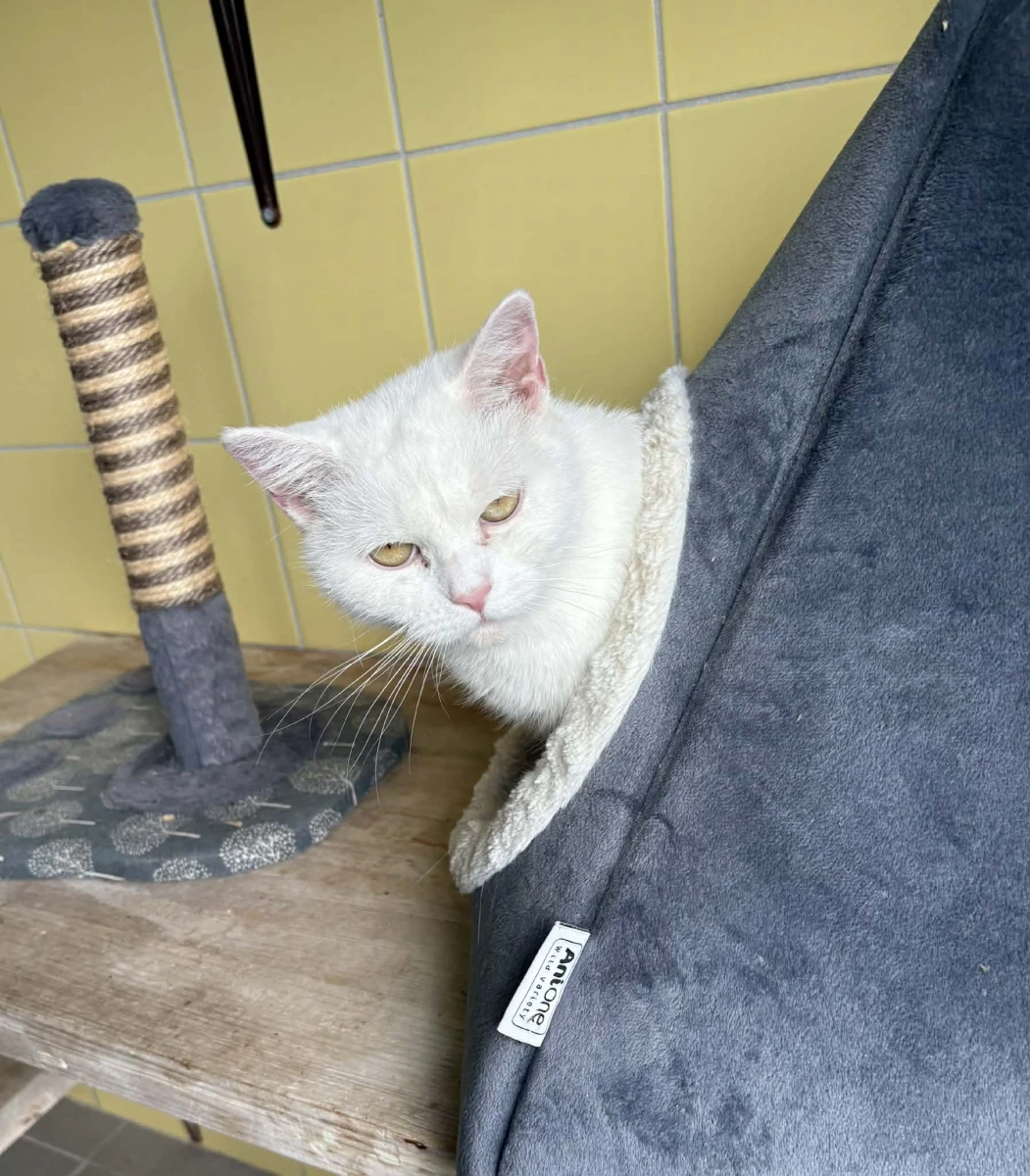 Zachowuje dystans wobec schroniskowych kotów (w pomieszczeniu), wobec ludzi natomiast jest całkiem miła, choć obecnie jeszcze trochę wycofana.