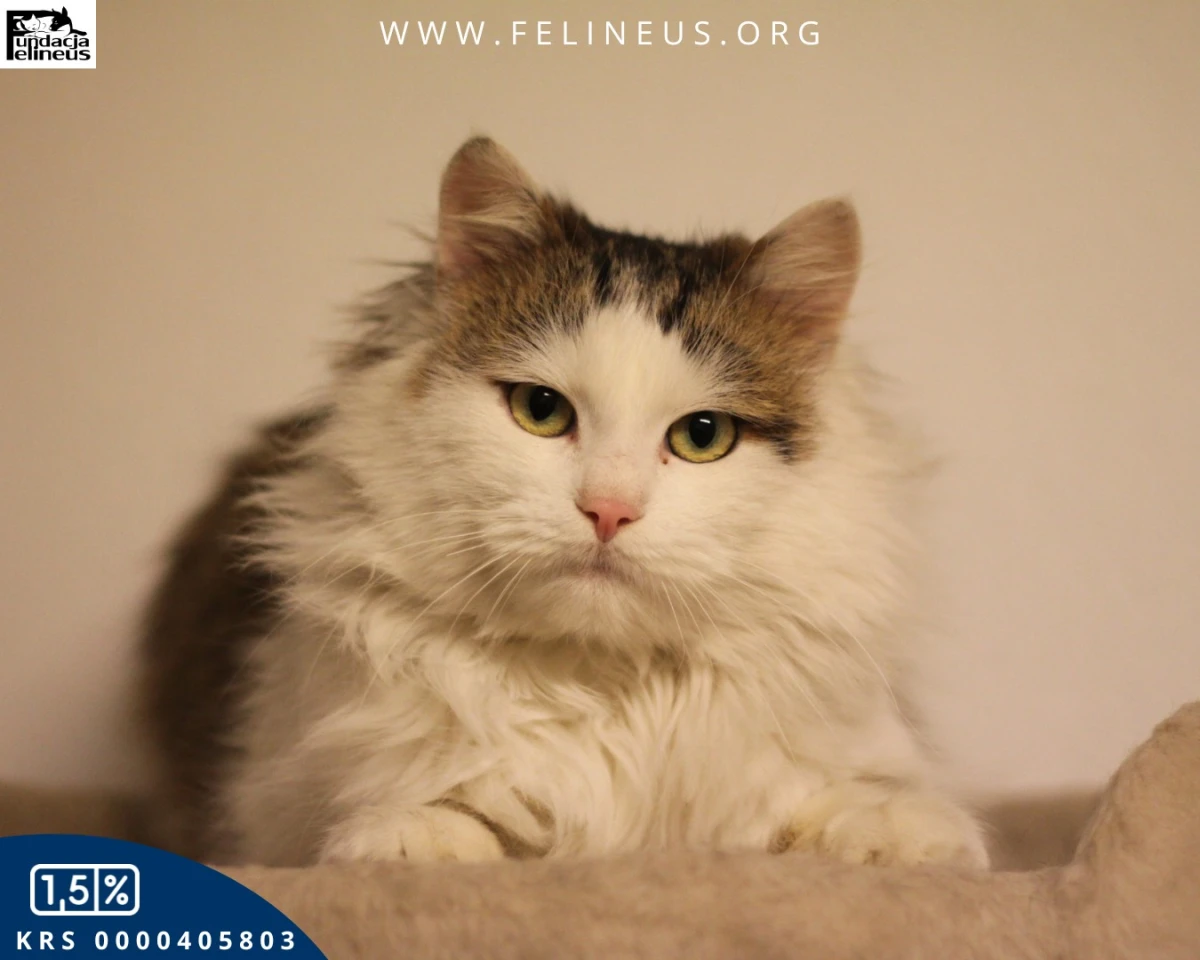 Maurycy - kocur urodzony w kwietniu 2023r. Ten wielki puchacz kocha człowieka i wspólne spędzanie czasu. Jest zawsze tam gdzie Ty, próbując pomóc w każdej czynności. Stosunek do innych kotów obojętny.