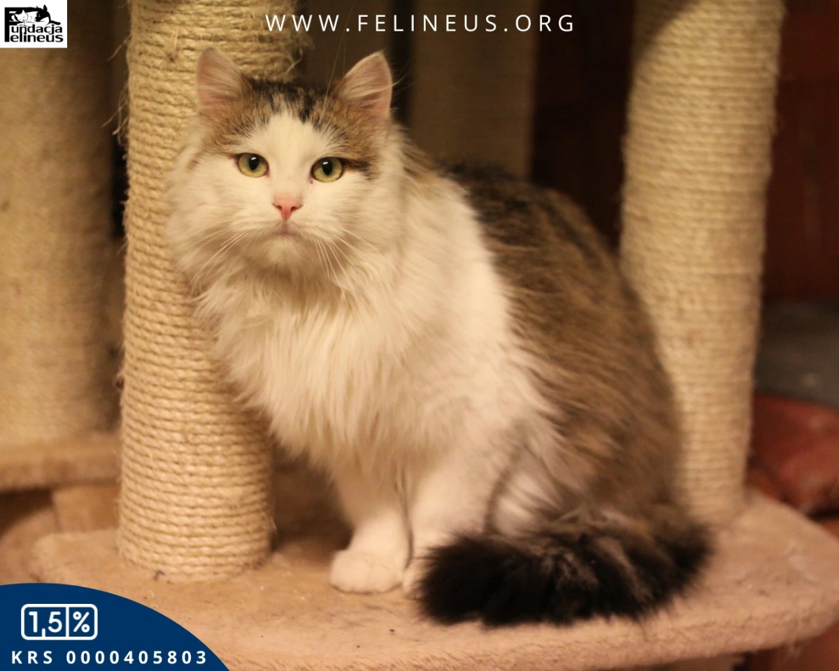 Kocurek jest zaszczepiony, odrobaczony, wykastrowany. Testy FeLV/FIV ujemne.