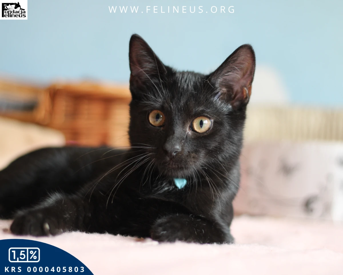 Mirko - kocurek urodzony w maju 2025. Mirko to urodzony koci aktor niczym z filmu przygodowego. Z nim zdecydowanie nie ma nudy. Godzinami można oglądać filmy z jego udziałem pt: "Władca Drapaka", "Mirko i Komnata Smaczków" czy też "Poszukiwacze zaginionej myszy" i "Kocie wojny" (w których występuje również rodzeństwo Mirko). Gwarantujemy, telewizor w jego przypadku zdecydowanie nie jest potrzebny. Warto dodać, że Mirko ma też ogromne serce do człowieka i kocha ludzi całym sercem. Po odegraniu ról we wszystkich filmach przychodzi wtulić się w człowieka żeby pójść spać. Mirko chętnie zabierze do nowego domu brata lub siostrę, albo też zamieszka w domu z innym kotem ale nie jest to warunek konieczny.
