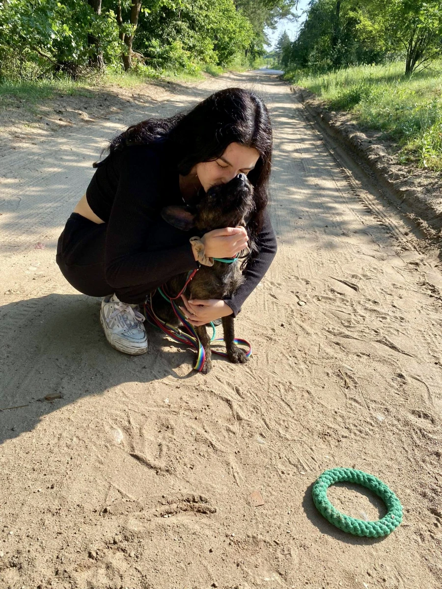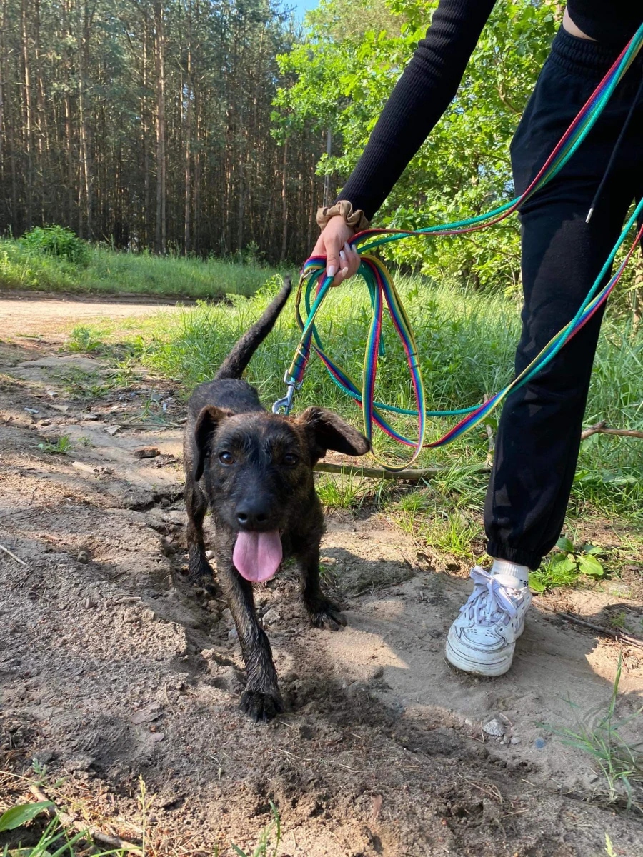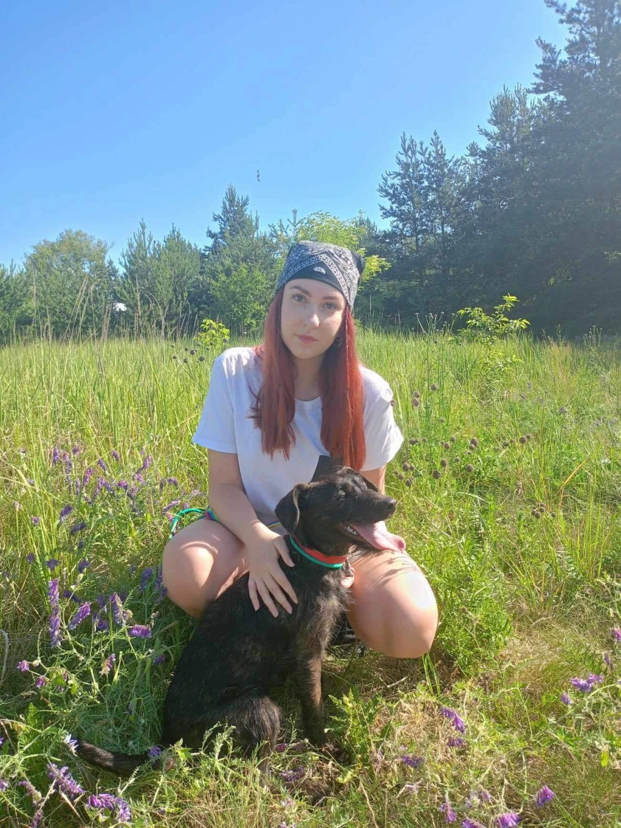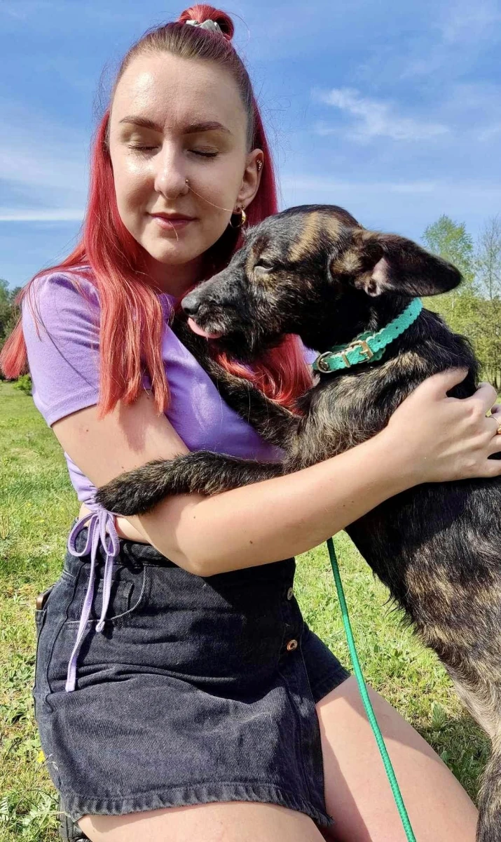 Mimo tego, co przeszła, Mucha jest kontaktowym, sympatycznym i przyjacielskim psiakiem. W pierwszej chwili może zachowywać rezerwę, ale jak już komuś zaufa, okazuje się ogromną pieszczochą, przytulakiem i całuśną suczką. Muszka uwielbia być wtulona w człowieka, czasami dosłownie wchodzi na głowę! ;) To aktywna młoda suczka: uwielbia biegać, bawić, skakać i spacerować. Mucha bardzo dobrze dogaduje się z innymi psami. Dobrze reaguje na psiaki mijane na spacerach, często stara się je zaczepiać do zabaw. Może zamieszkać w domu, w którym jest już pies, ale wtedy wymagamy spaceru zapoznawczego psów. Do ludzi jest niezwykle kochana, przyjazna. Codziennie wita nas tą swoją uśmiechniętą mordką. Jest spragniona kontaktu, a za każdą poświęconą jej chwilę jest bardzo wdzięczna. Z zadowoleniem oblizuje po rękach i twarzy. Łagodna jak baranek i pozytywnie nastawiona na wszelkie czułości. Miła i przytulaśna. Mucha lubi być w centrum uwagi. Bardzo chętnie zostanie pieskiem całej rodziny - w końcu im więcej rąk do głaskania, tym lepiej. ;) To taka pozytywnie zakręcona psina, także z dziećmi powinna się szybko dogadać. Przyszły właściciel musi trochę nad nią popracować - z racji wieku Mucha nadal jest roztrzepana i trzeba ją konsekwentnie wychowywać. To inteligentna i pojętna suczka, szybko i chętnie się uczy. Bardzo ładnie chodzi na smyczy, jest aktywną suczką i takiego szukamy dla niej domu.