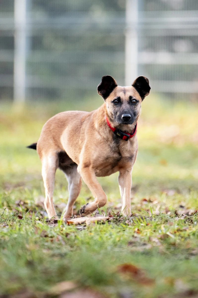 Mysia - bardzo miła do ludzi, zainteresowana kontaktem, jednak nie umie w ogóle chodzić na smyczy, najprawdopodobniej nigdy wcześniej nie była na niej wyprowadzana. Dobrze dogaduje się z innymi psami. Ma ok. 6 lat