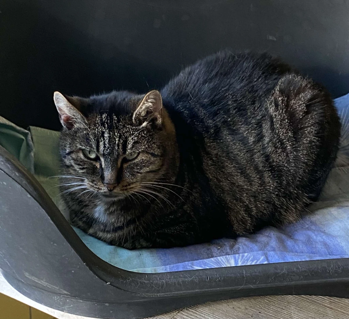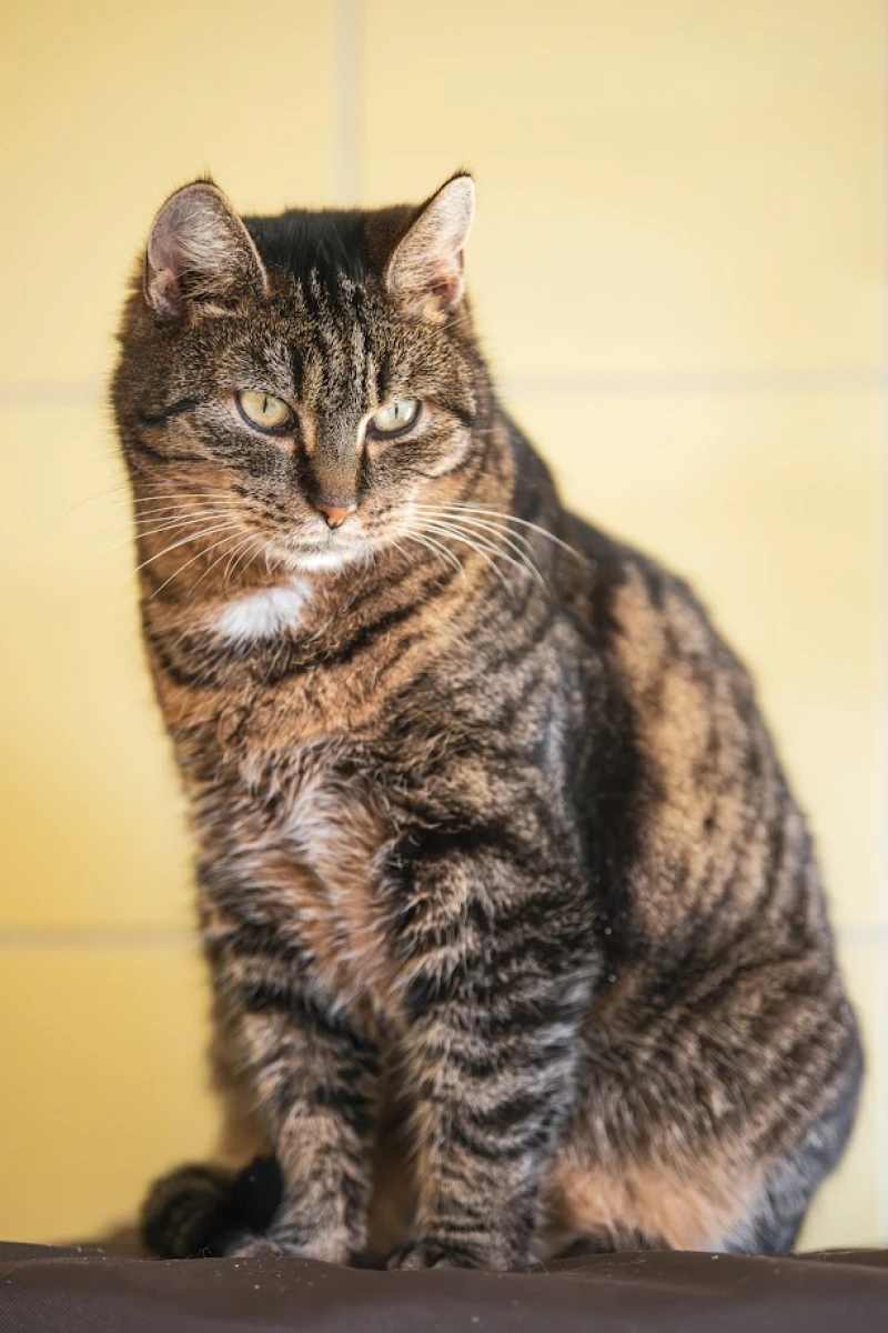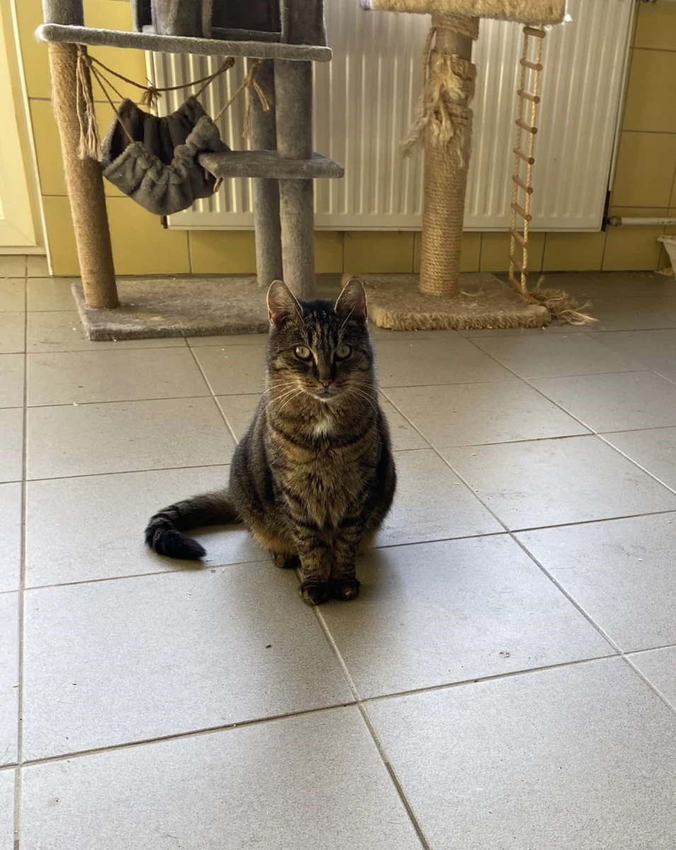 Jest to bardzo ładna kotka o ciemnoburym umaszczeniu. Przyciąga uwagę, jednak należy pamiętać, że kotka wymaga dalszego cierpliwego oswajania. Jest w dobrych relacjach z innymi kotami.
