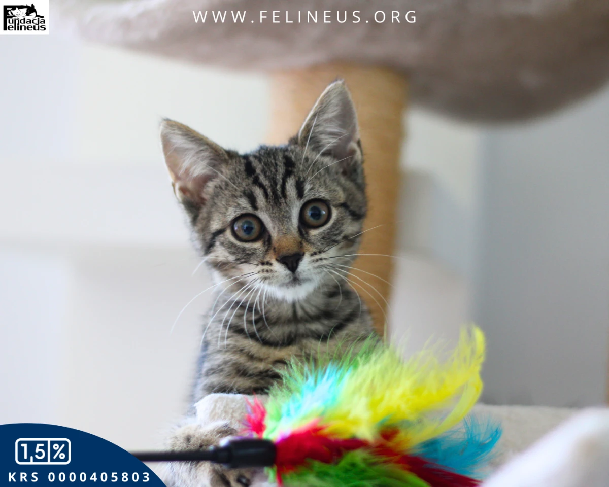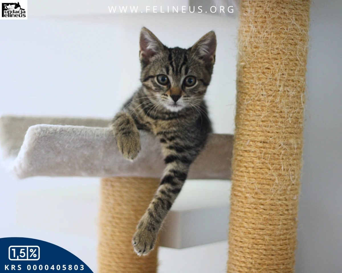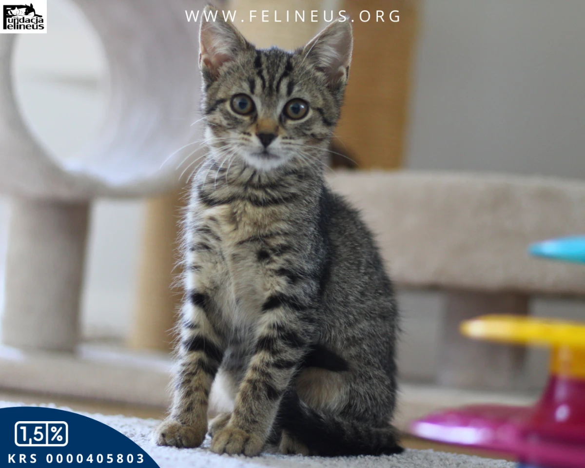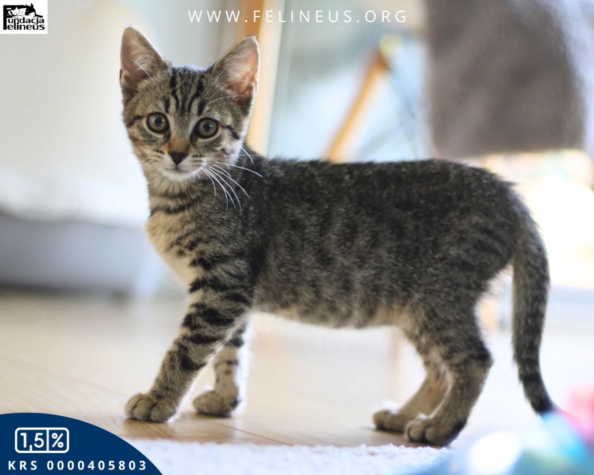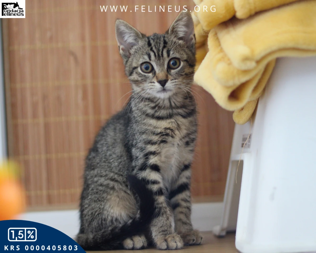 Nati to urocza buraska urodzona w czerwcu 2025 roku. To ciekawska istotka pełna gracji i kocięcej radości. Lubi zabawy i wspinaczki, najlepsze na drzemki są najwyższe piętra drapaka i półki pod sufitem. Choć przez pierwszych kilka minut może się wydawać nieco nieśmiała, niech nie zmylą nikogo pozory. Malutka Nati to zdecydowanie towarzyska kicia, która do pieszczot i wspólnej zabawy zaprosi zarówno człowieka jak i inne koty. Dlatego będzie idealną przyjaciółką w domu, w którym mieszka już inny, przyjazny kot (nie jest to warunek konieczny adopcji). Malutka Nati jak na kocią damę przystało wzorowo korzysta z kuwety. Kotka szuka domu, w którym stanie się członkiem rodziny, kochanym i bezpiecznym (ze względu na jej ciekawską naturę preferujemy okna/balkony zabezpieczone siatką).