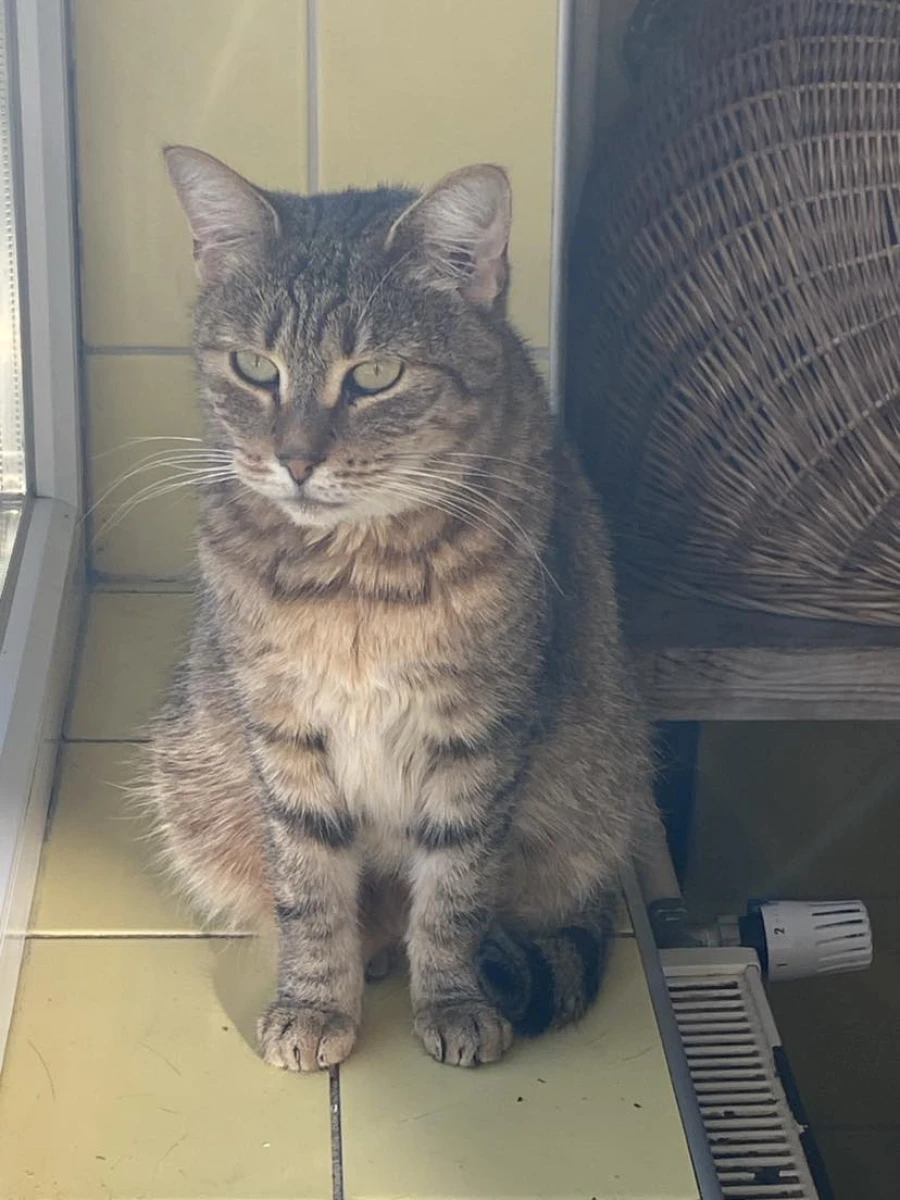 Kocia seniorka, nieoswojona. Kotka nie ucieka od razu przed ludźmi, jednakże, podobnie jak wiele innych kotów, nie pozwala na dotyk. Nie wykazuje oznak agresji, lubi inne koty.
