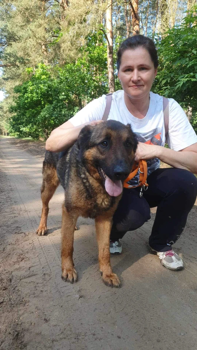A jaki charakter ma Nemo? Z natury jest kontaktowy, bardzo przyjacielski, choć początkowo zdystansowany. Szybko przekonuje się do obcych, szczególnie ceni sobie mięsne smakołyki, co znacznia ułatwia proces poznawania. :) Jest tak rozkoszny, że każdy zakochuje się w nim już na pierwszym spotkaniu. Zapraszamy na spotkanie - przekonasz się o tym na własnej skórze! :D Przekochany i lubiący kontakt z ludźmi. Nemo to umiarkowanie energiczny psiak. Zdecydowanie lubi pobiegać, pospacerować, ale potrafi się uspokoić i nie wymaga ciągłych aktywności. Najważniejszym zajęciem dnia jest dla Nemo kontakt z człowiekiem. Podaje łapkę, siada, opiera się na człowieku, całuje po twarzy i pokłada się do głasków. Opiera się na nodze opiekuna niczym barman o ladę. ;) Jest pozytywnie nastawiony i pełną piersią korzysta z każdej chwili „wolnością” na wybiegu. Szczęśliwy będąc blisko człowieka, wtedy dodatkowo odżywa i promienieje. Jest spragniony kontaktu, a za każdą poświęconą chwilę jest bardzo wdzięczny. Jest całkowicie skupiony na człowieku, jedynie smaczki potrafią odwrócić jego uwagę. ;) Apetyt ma spory, ale nie ma się co dziwić – gdy do nas przybył był bardzo wychudzony. Nemo to bardzo mądry pies, umie już podstawowe komendy (które z chęcią wykonuje - nawet, gdy nie jest o to proszony :)), a z chęcią uczy się wielu kolejnych. Piesio jest grzeczny i karny, ale jeszcze trochę nieokiełznany i na spacerze zdarza mu się zaplątać w smycz. Psiak na początku wyjścia próbuje być wszędzie na raz, jednak po kilku minutach spaceru się wycisza. Najlepiej ulubił sobie wyjścia na łono natury, uwielbia przemierzać polne i leśne ścieżki. Nemo cieszy się otaczającą go naturą, czerpie ze spaceru pełną piersią. Podejrzewamy, że Nemo czułby się najlepiej w domu na obrzeżach, na wsi. Miejski zgiełk, ruch uliczny i tłumy obcych ludzi i zwierząt nie działają na niego dobrze. Zamiast tego preferuje spokój i ciszę. Bardzo dobrze czuje się w towarzystwie dzieci, chętnie zaczepia pociechy do zabaw i oddaje się pieszczotom. W stosunku do psów bywa z lekka nagabujący, potrafi też jasno wyznaczyć granice gdy już nie chce kontaktu. Mieszkał na wybiegu z trzema innymi dużymi samcami, a niedawno zamieszkał w kojcu z młodym psem, Robisem. Mimo jej nachalnego usposobienia, Nemo nie reaguje na niego agresywnie, zabawowo odpowiada na jego zaczepki. ;) Po wcześniejszym zapoznaniu Nemo mógłby zamieszkać z innym psem. Utrzymuje czystość w boksie. Szukamy dla Nemo osoby, która z miłością prowadzi go we wspólne życie.