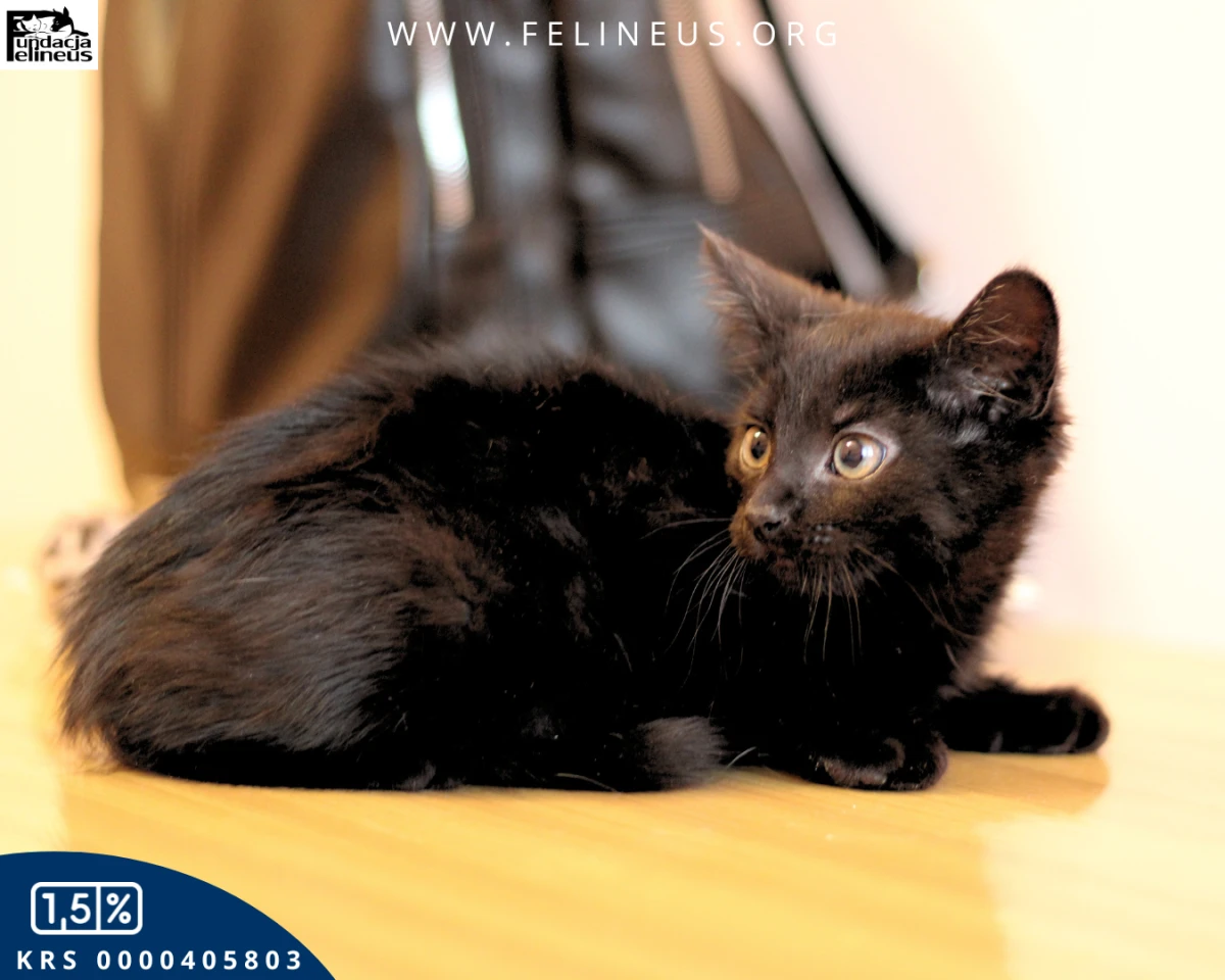 Perła - urodzona w czerwcu piękność z nieco dłuższymi włosami. Najspokojniejsza z czwórki rodzeństwa, co w praktyce oznacza tylko, że sama nie zaczepia ludzi. Uwielbia bawić się dzwoniącymi piłeczkami i urządzać dzikie biegi z przeszkodami. Bez problemu można ją przytulać i głaskać. Czeka na dom, który ją rozpuści i nauczy, jak być przylepką. Jest odrobaczona i zaszczepiona. Może iść do adopcji sama albo z którymś z rodzeństwa: Onyksem, Chloe lub Maurą.